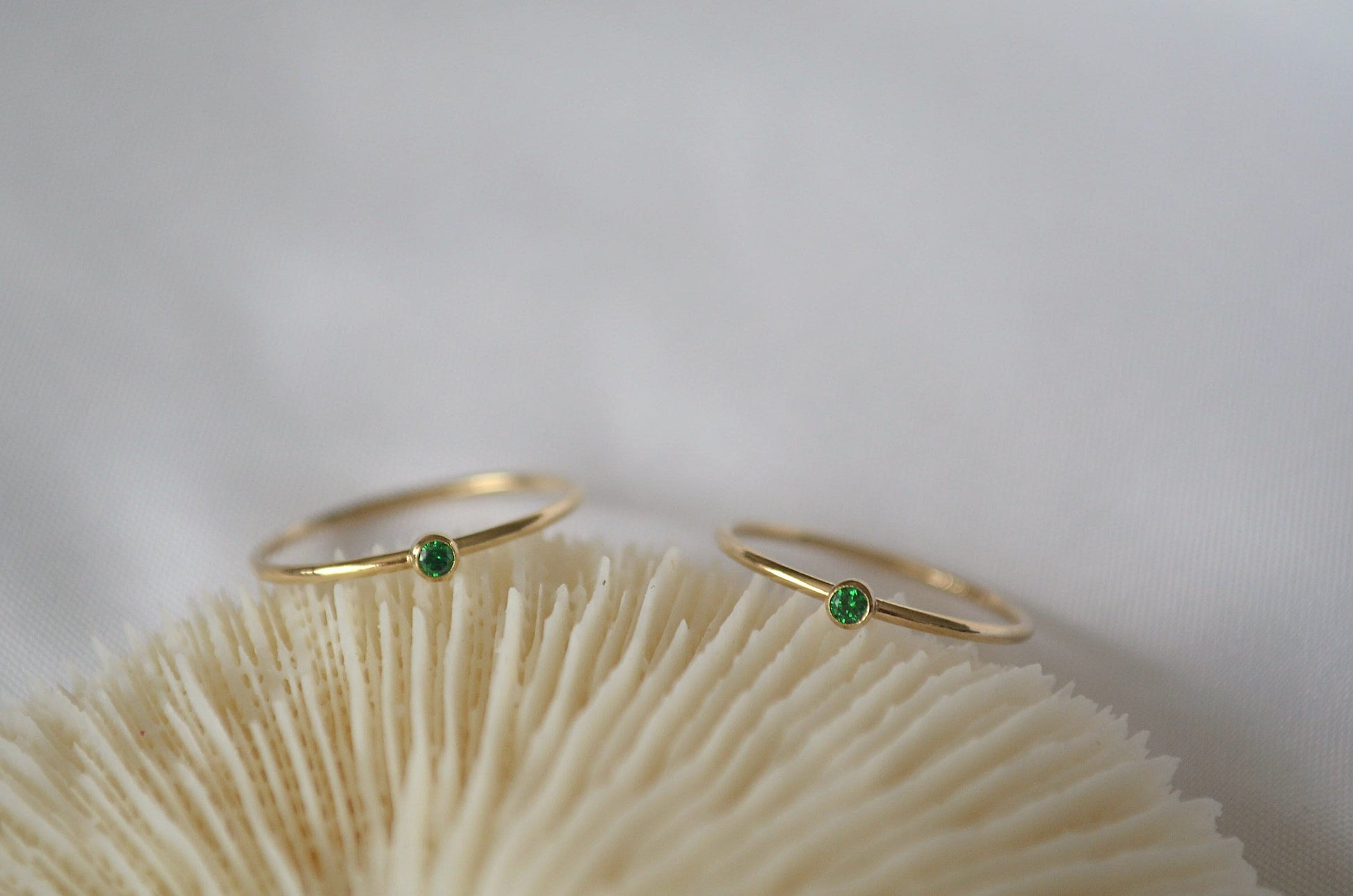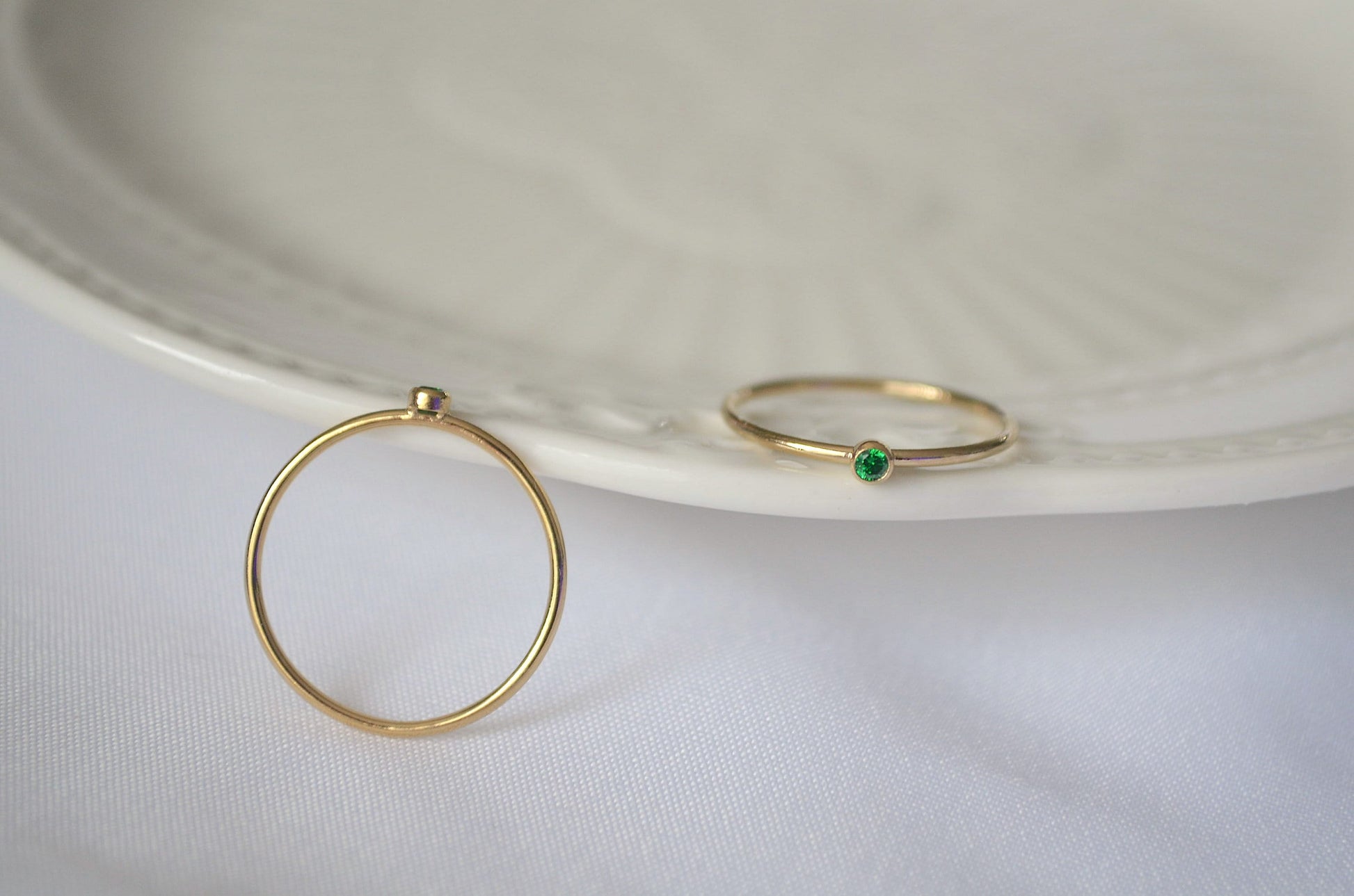 This simple but classy ring is perfect for everyday wear and special occasion. It features a 2mm green cubic zircon stone on the 14k gold filled band. Perfect for wearing on its own and stacking with other pieces.