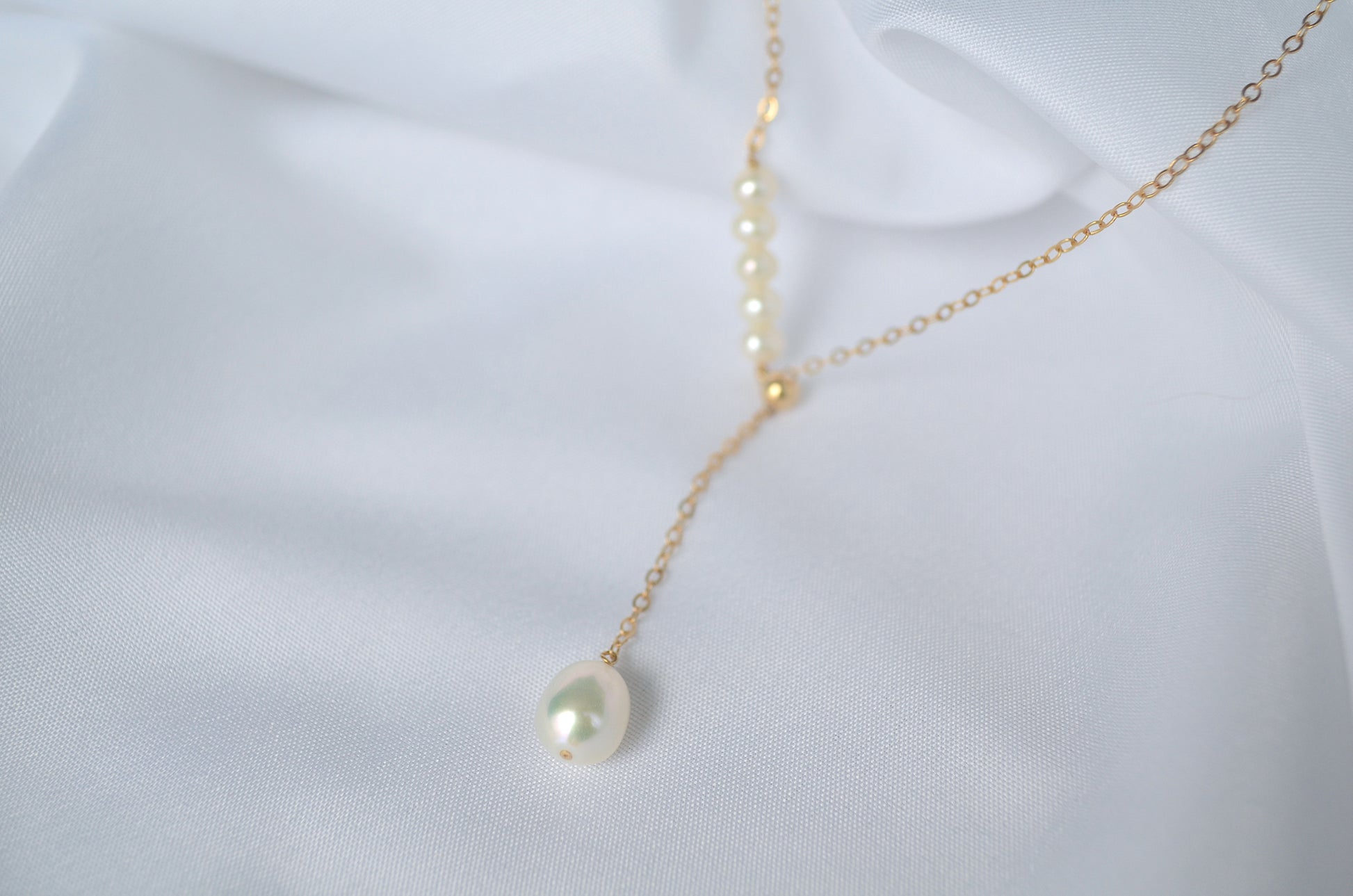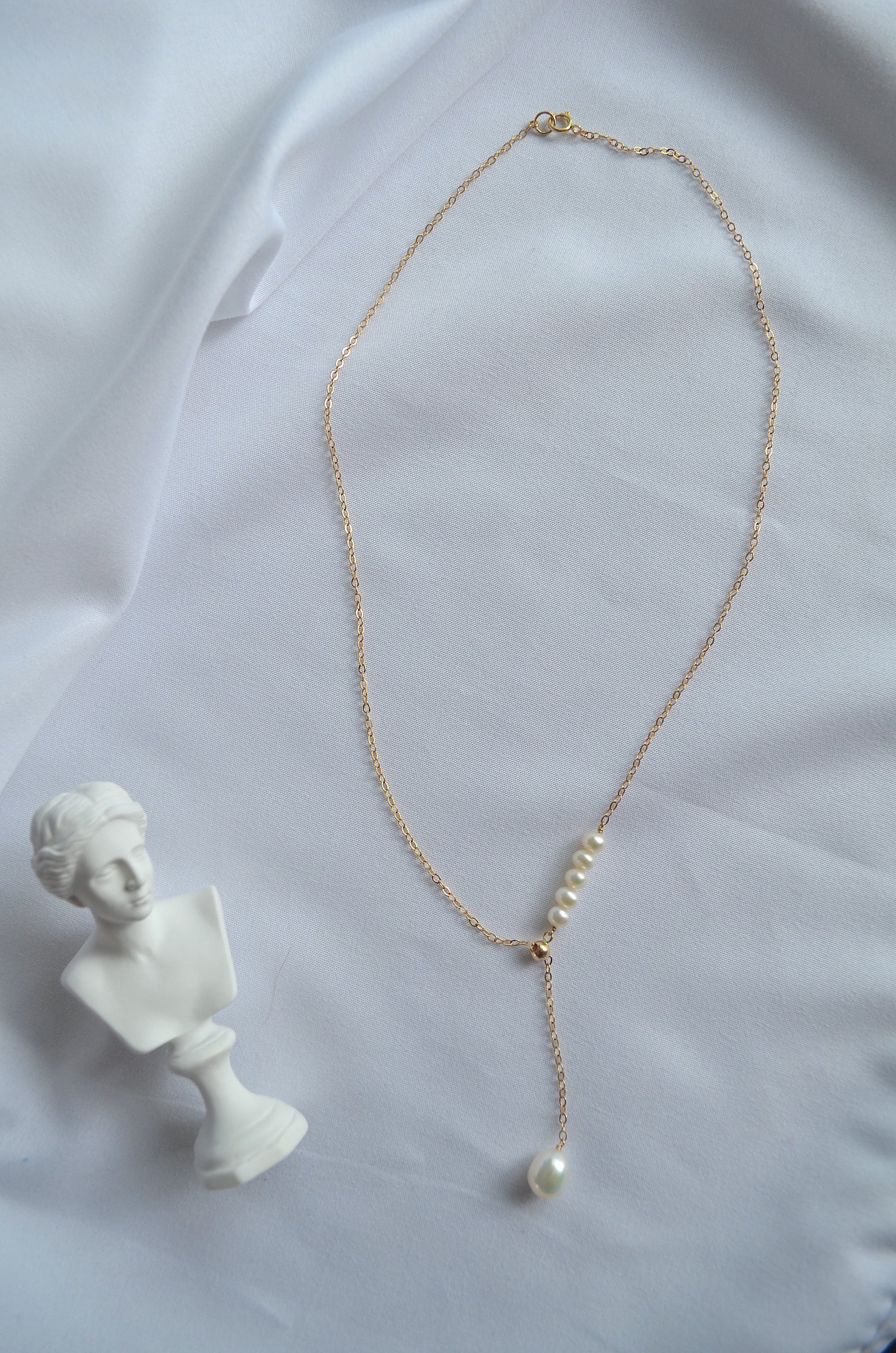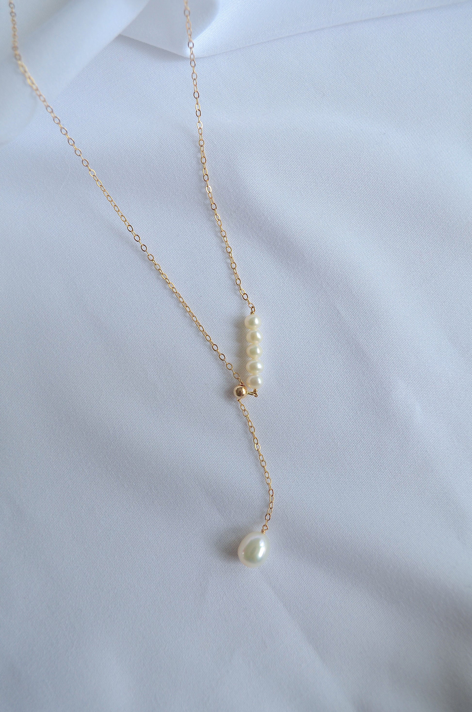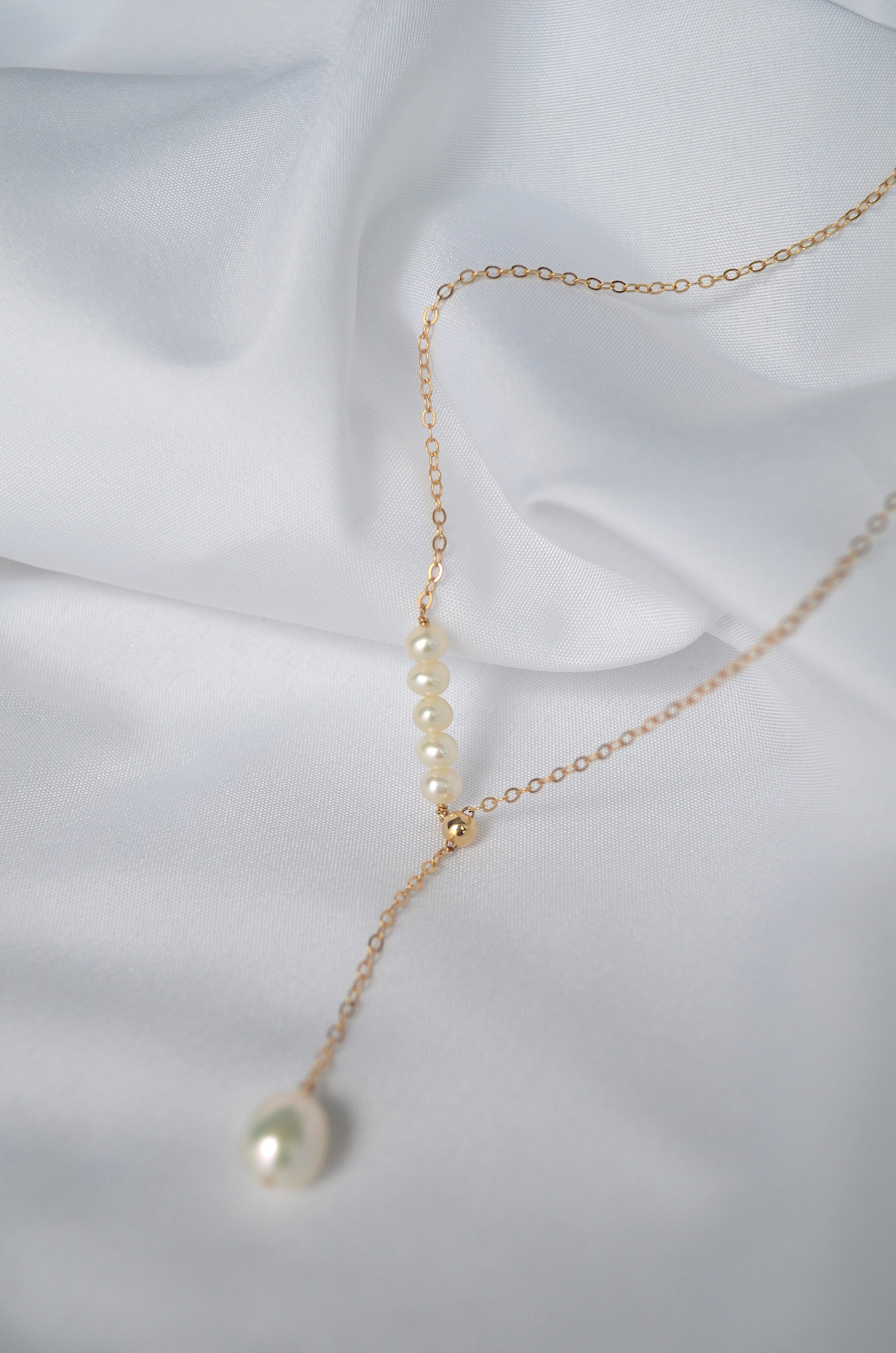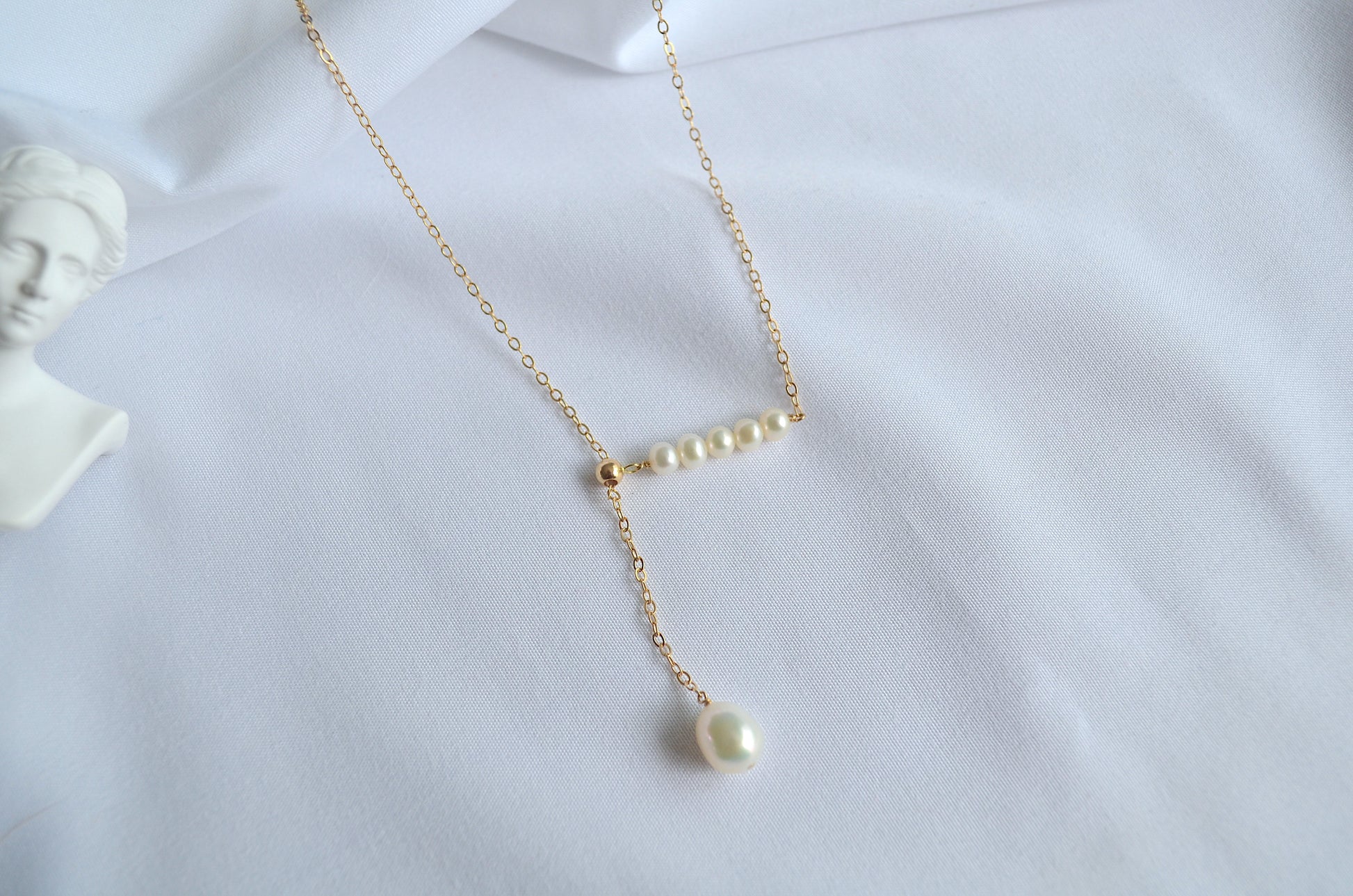 ❤️ This elegant necklace is handcrafted with two different sizes of high quality freshwater pearls and 14k gold filled chain. Featuring an adjustable chain, you can easily slide the bead along the chain to make it a choker or wear it as a classic Y shape necklace.