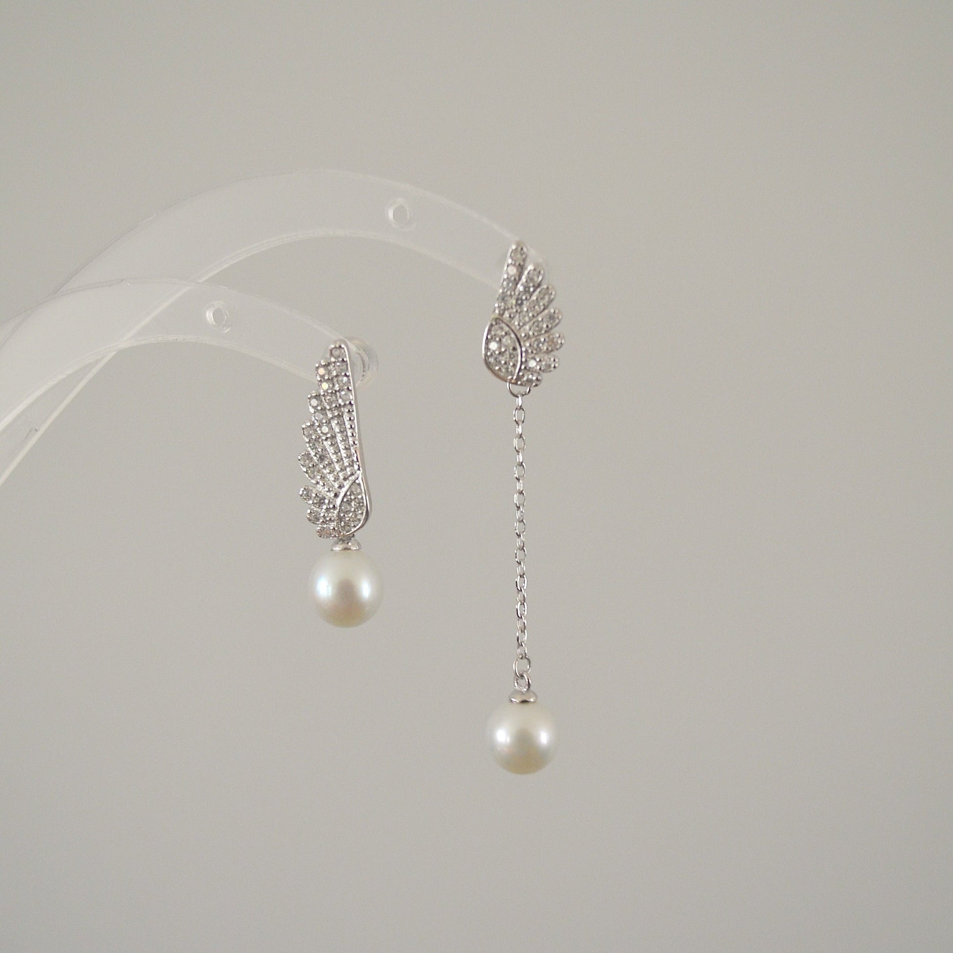 These mismatch angel's wing pearl earrings feature delicate, graceful designs inspired by the elegance of angel wings, combining 7mm pearls carefully hand picked. They are perfect for adding a touch of divine beauty and timeless charm to any outfit.