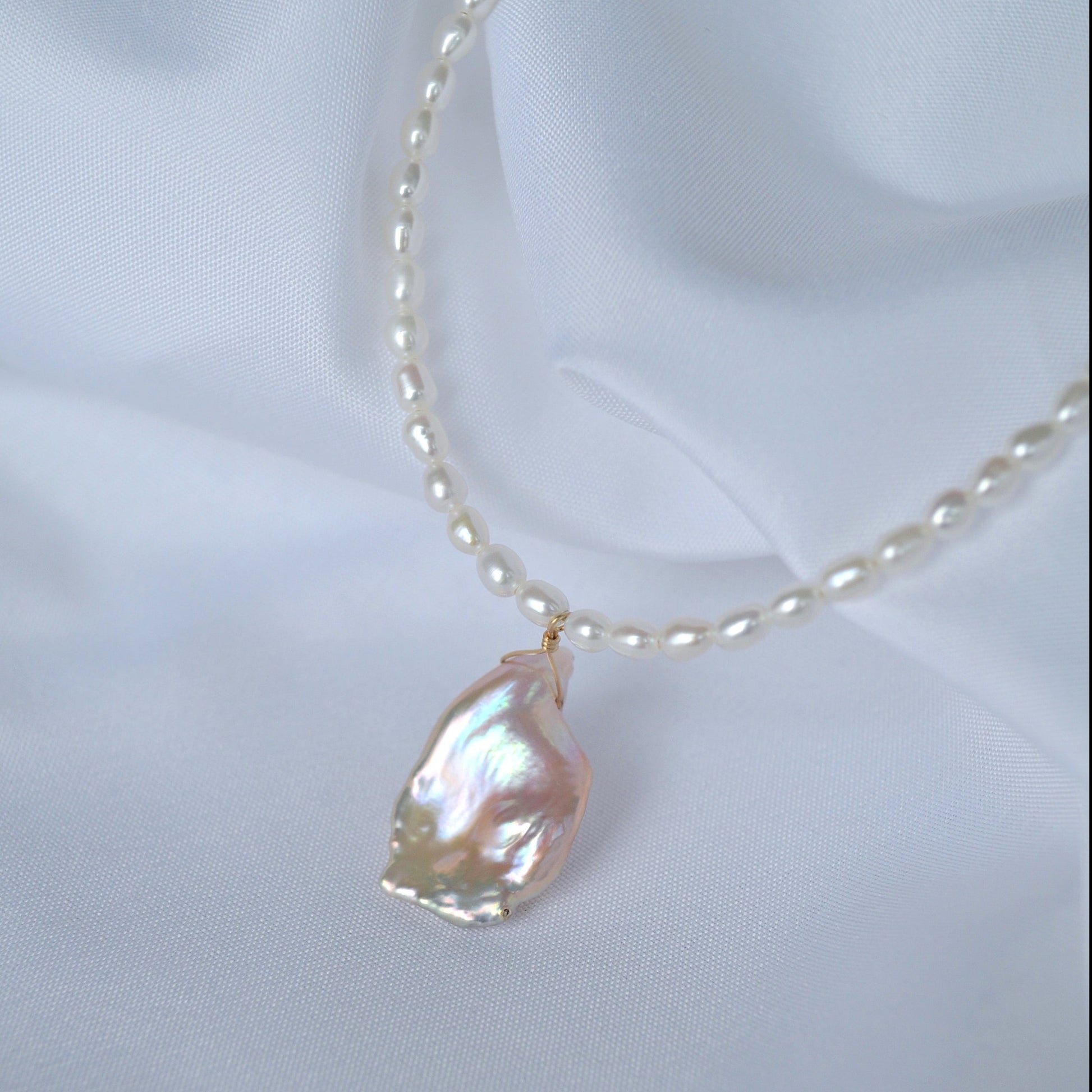 ❤️ This pearl choker necklace is handcrafted with little freshwater pearls and a irregular petal pearl with high lustre. It is absolutely elegant on its own or layer it with other necklaces for a chic and modern look.
