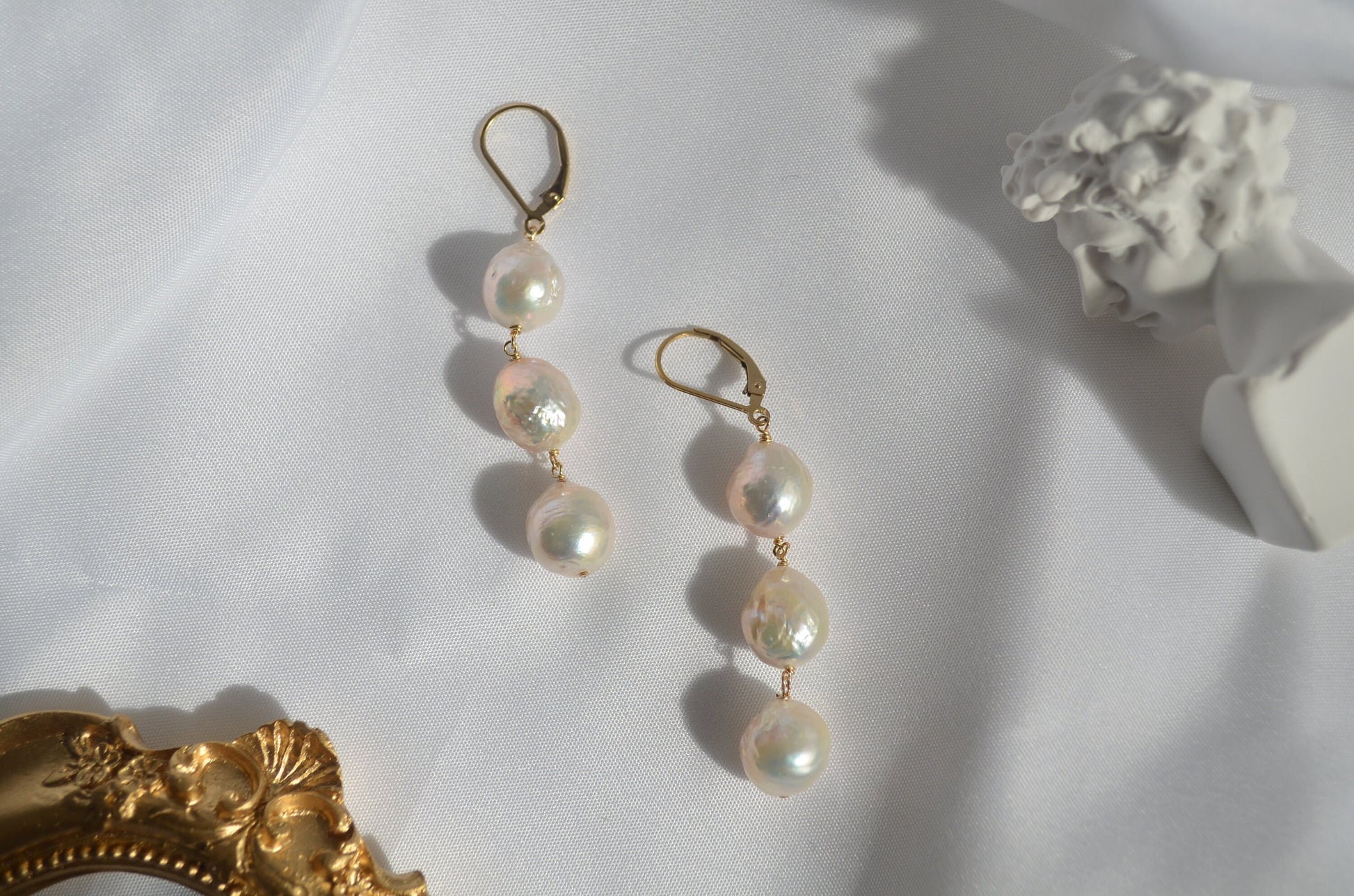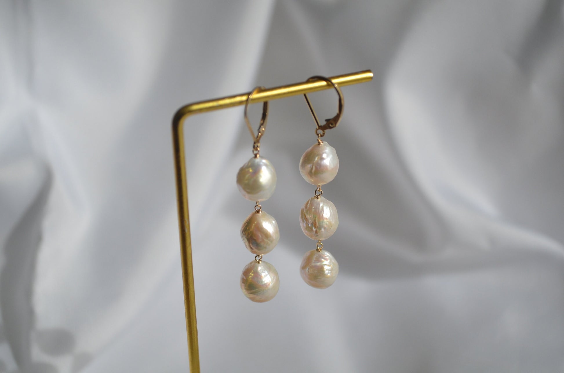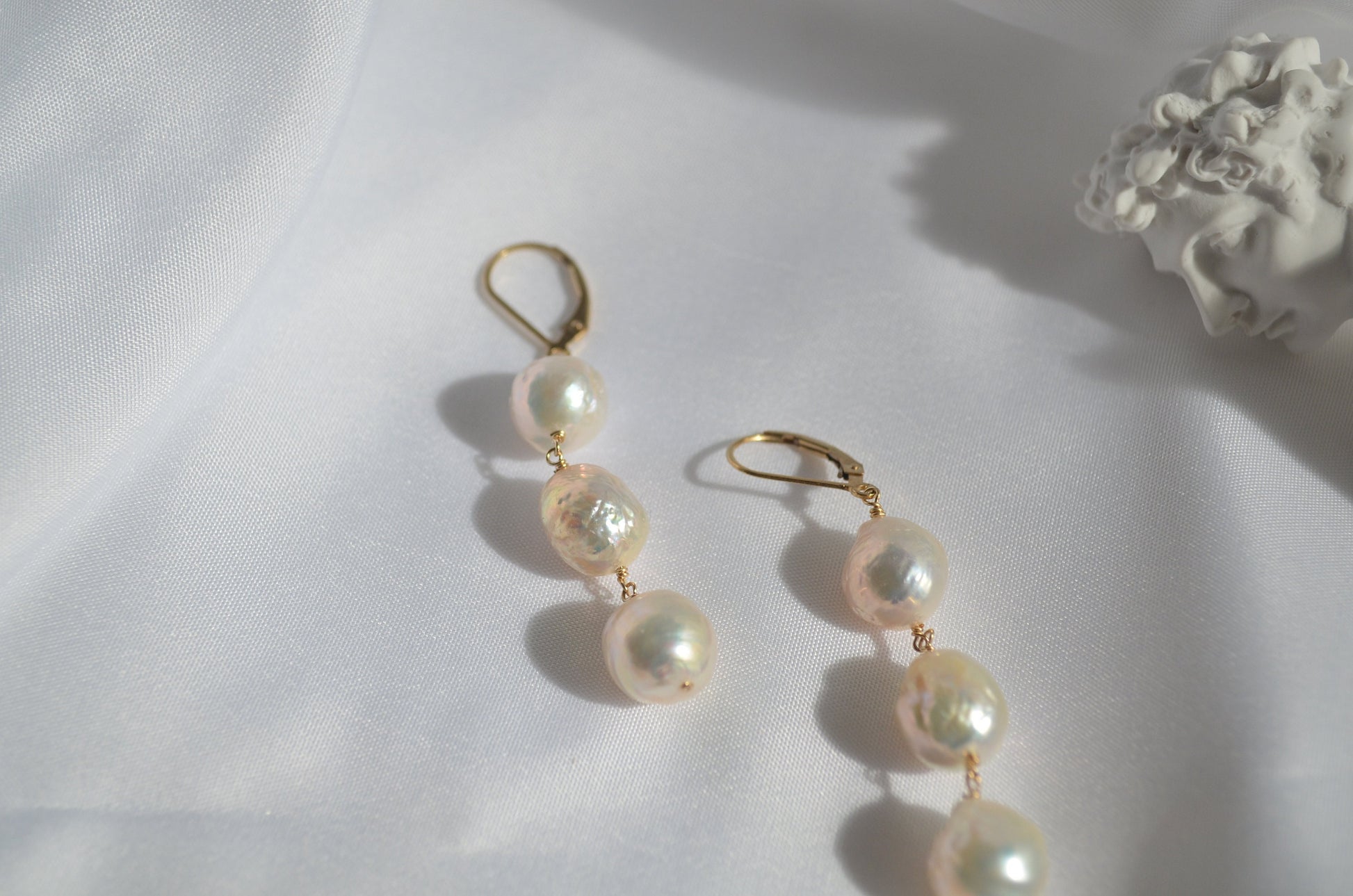 This statement earrings can make you "wow". Every ivory pearl is like a candy with high level of metallic luster.
