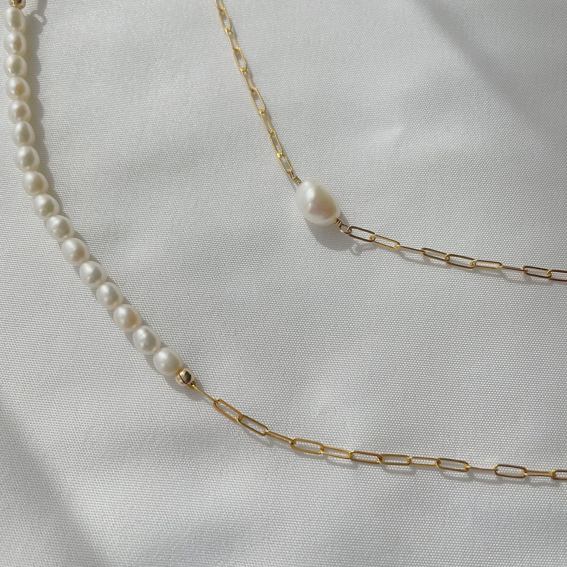 Pearl-Nature shiny freshwater pearls, shape varies for each chocker.