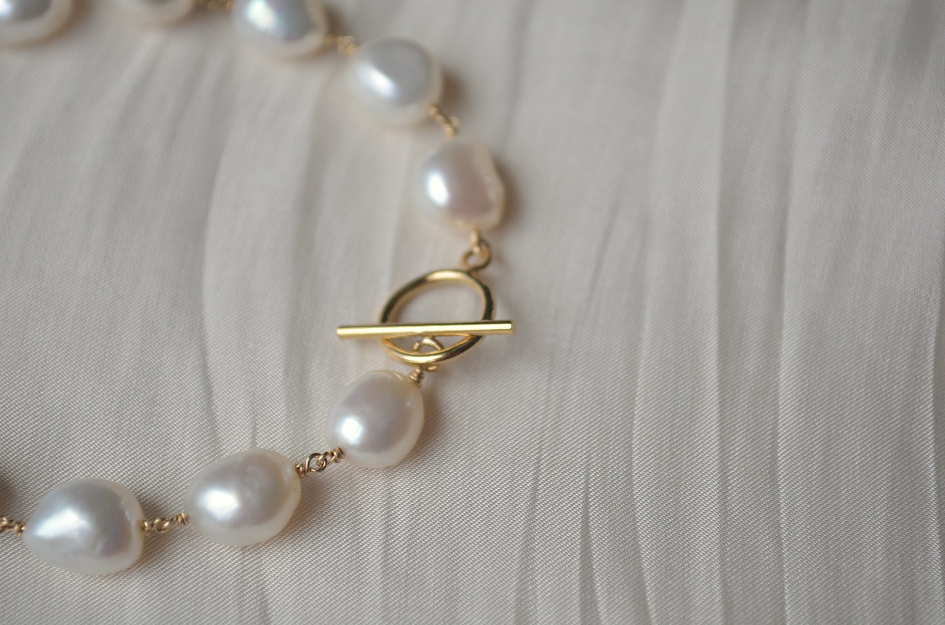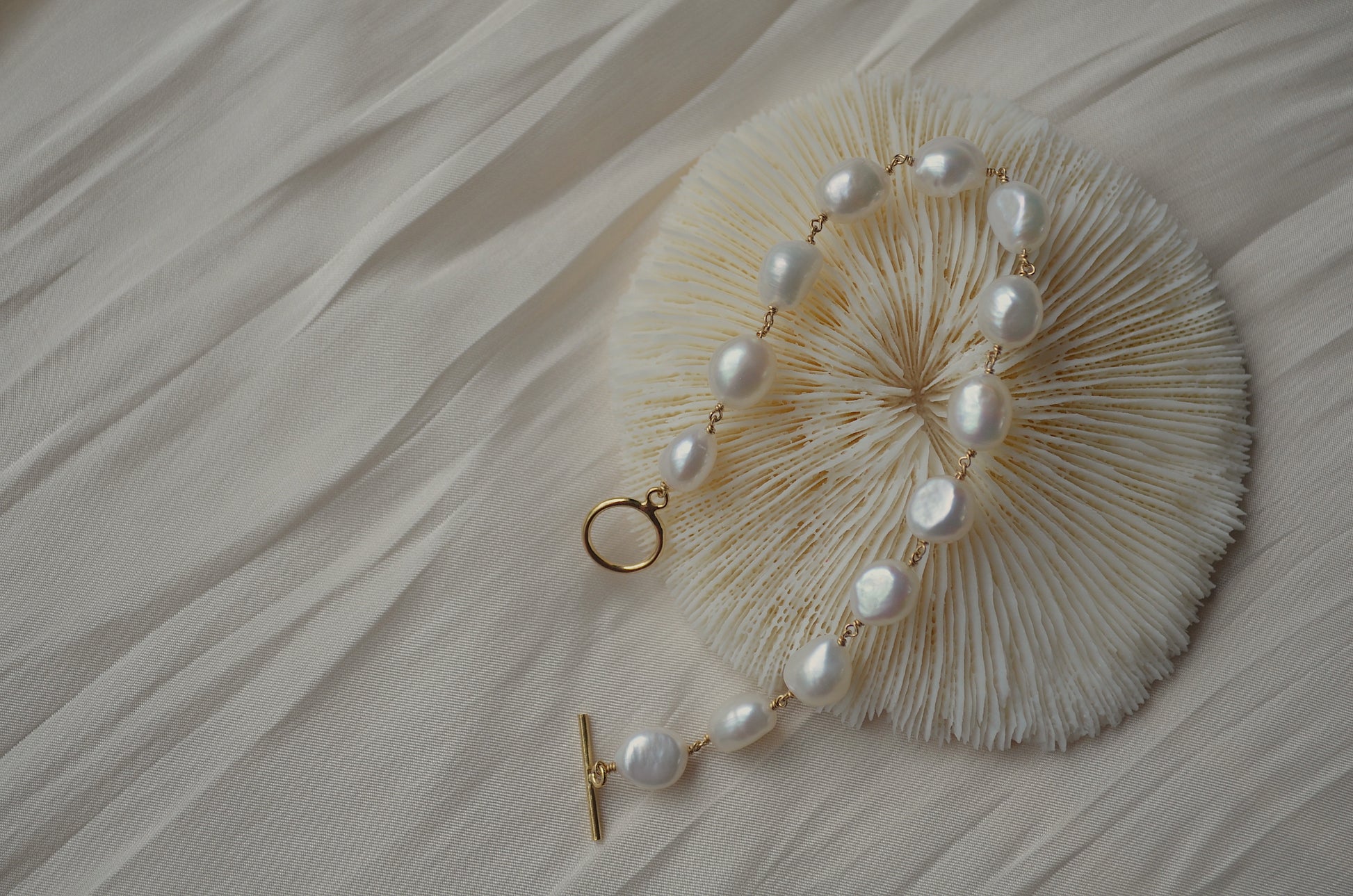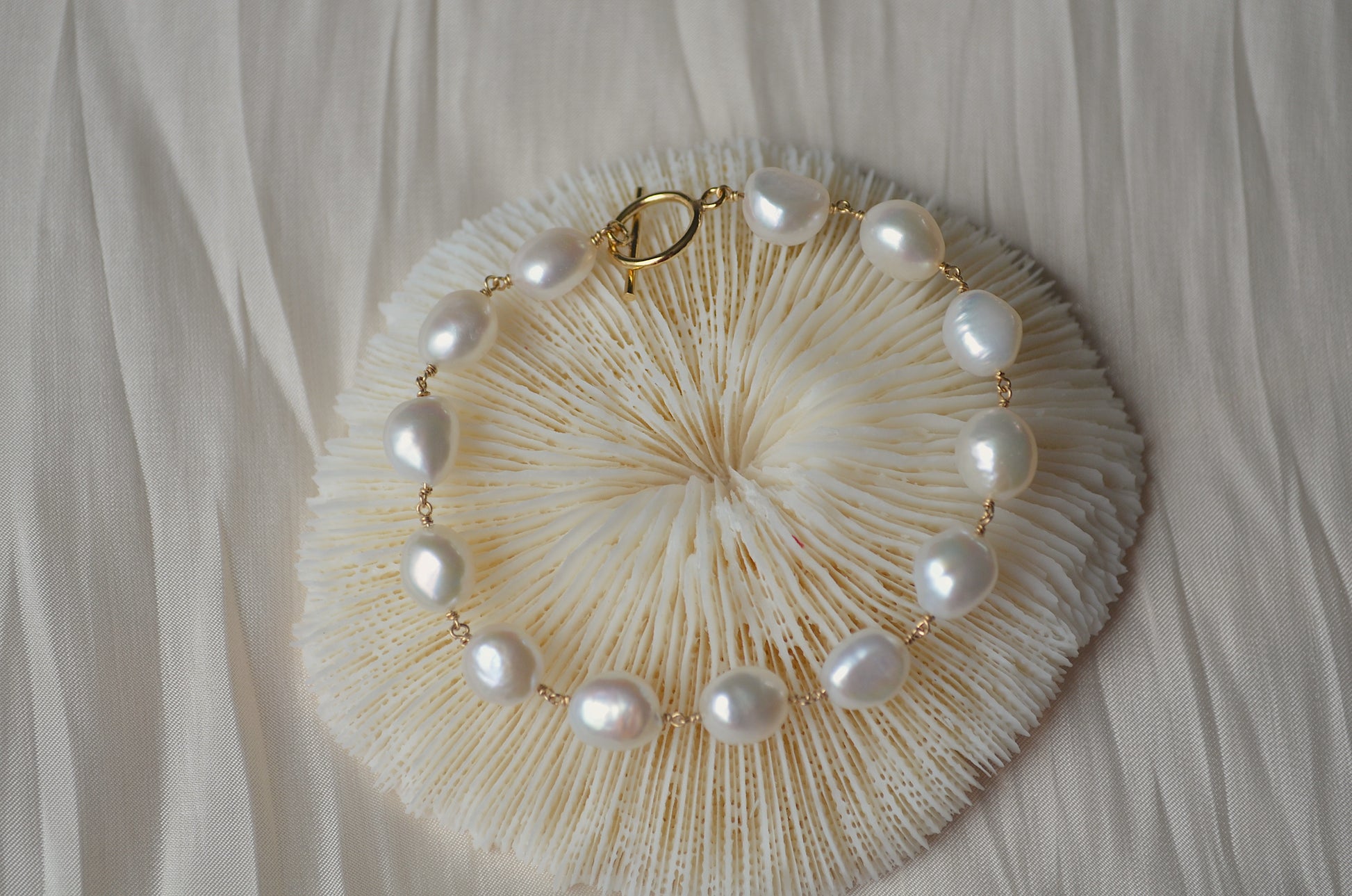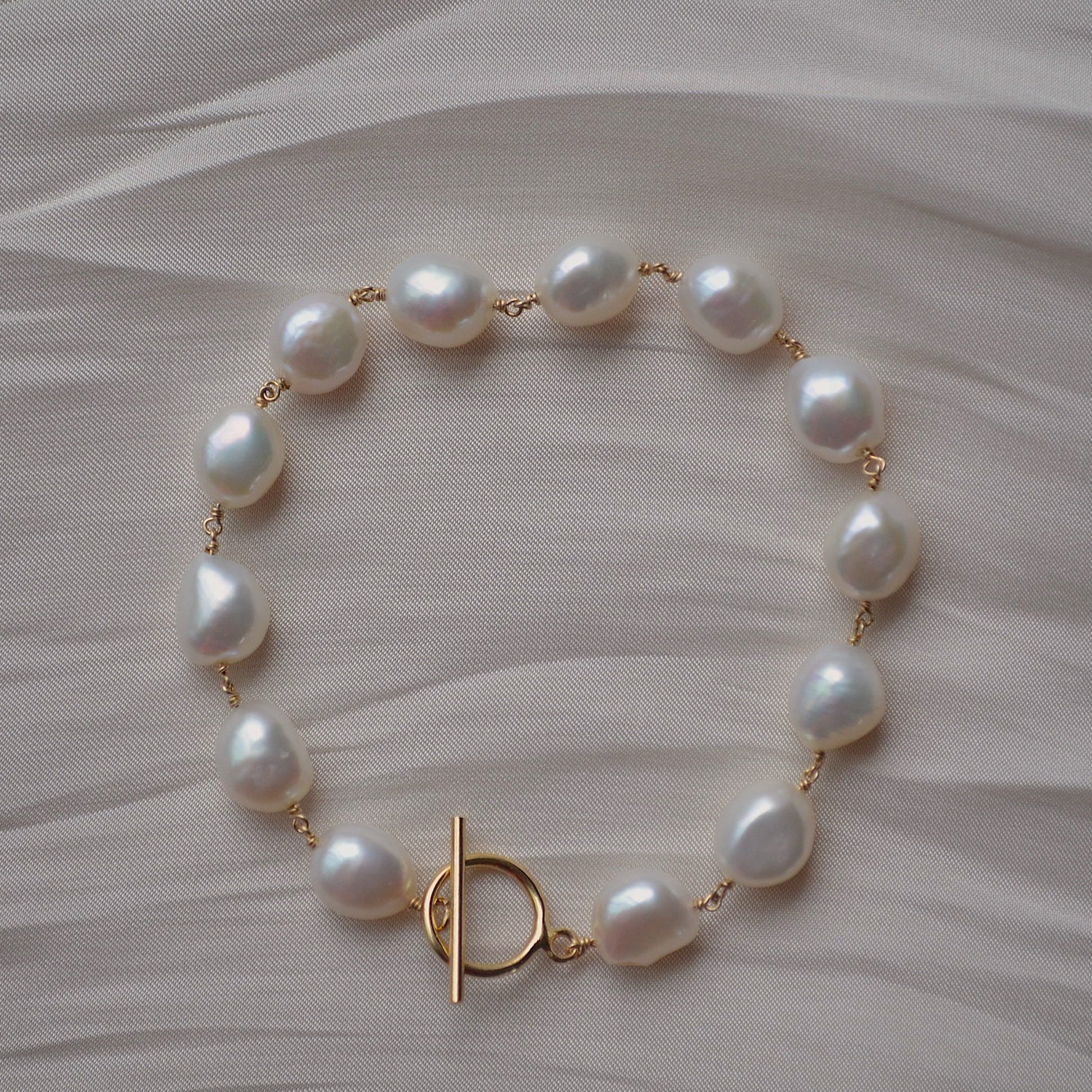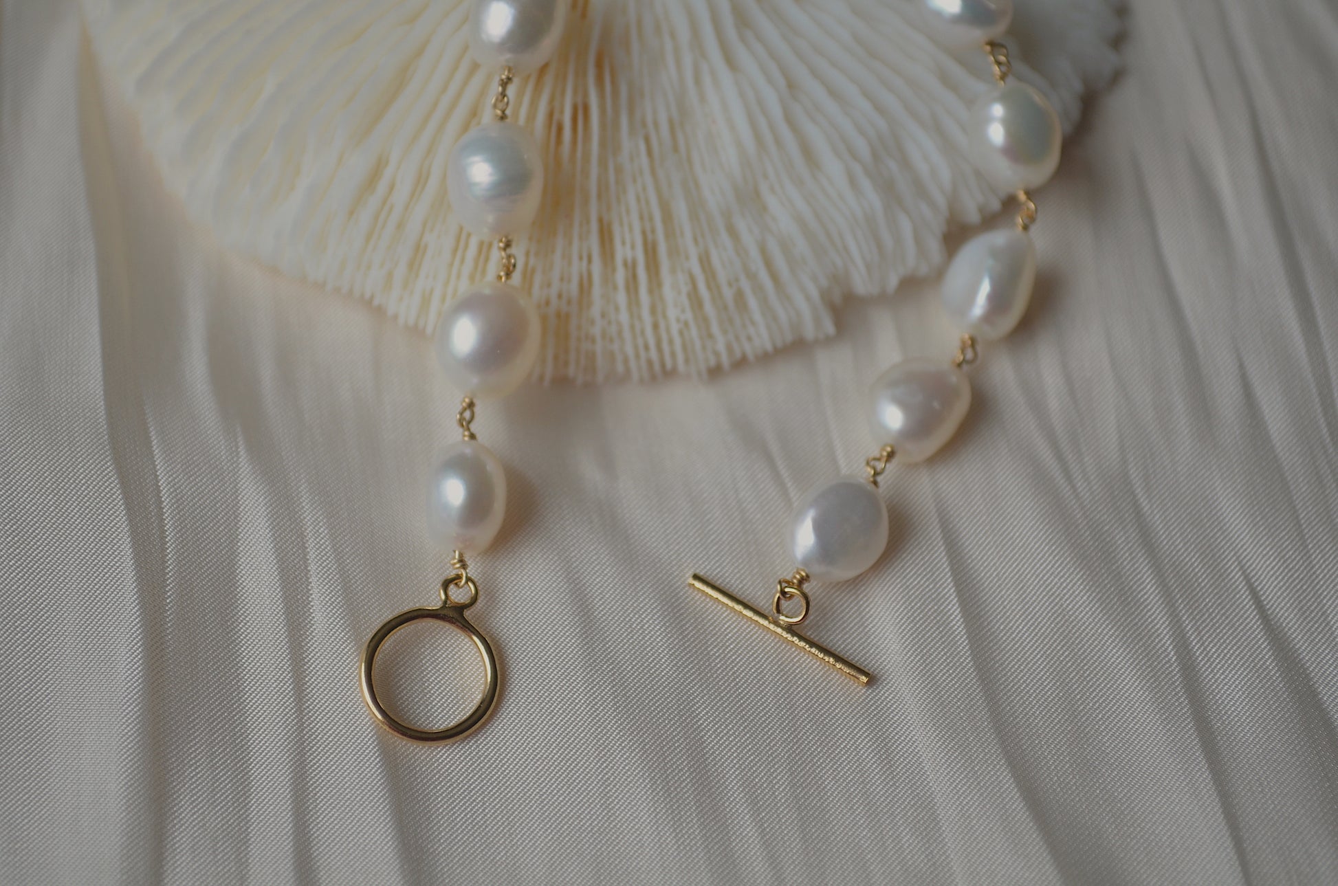 ❤️ This beautiful baroque pearl bracelet is handmade with freshwater baroque pearls and 14k gold filled materials. Each baroque pearl is carefully handpicked by me with beautiful shape and hight level of luster. Each pearl is a unique gift from the nature, it might come with imperfections