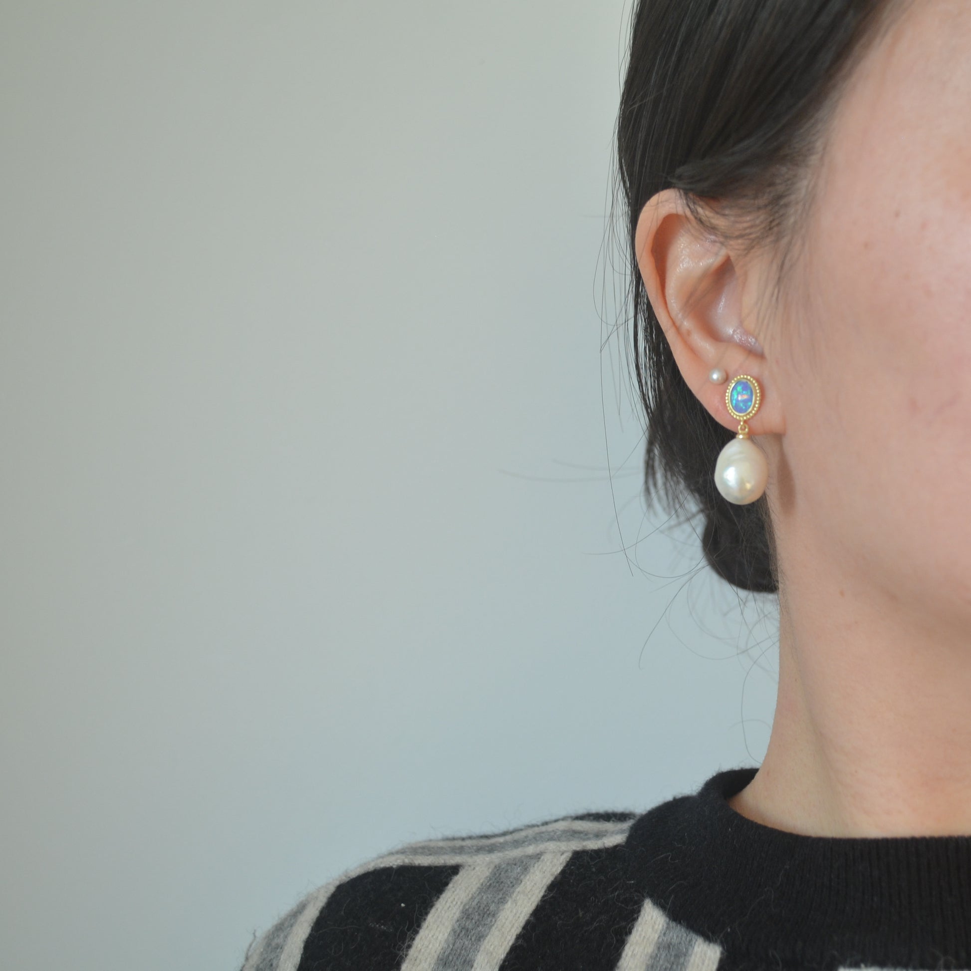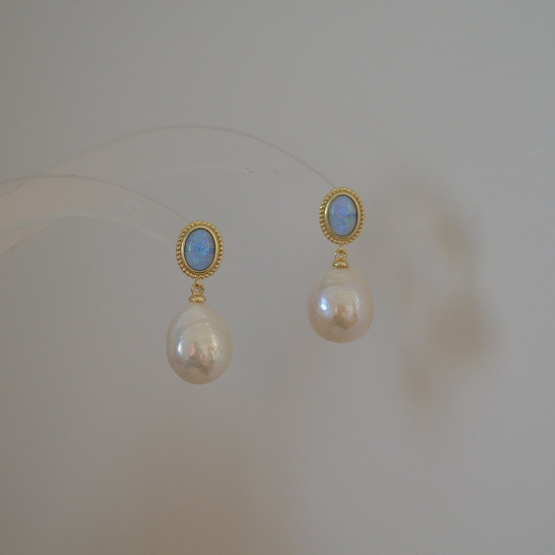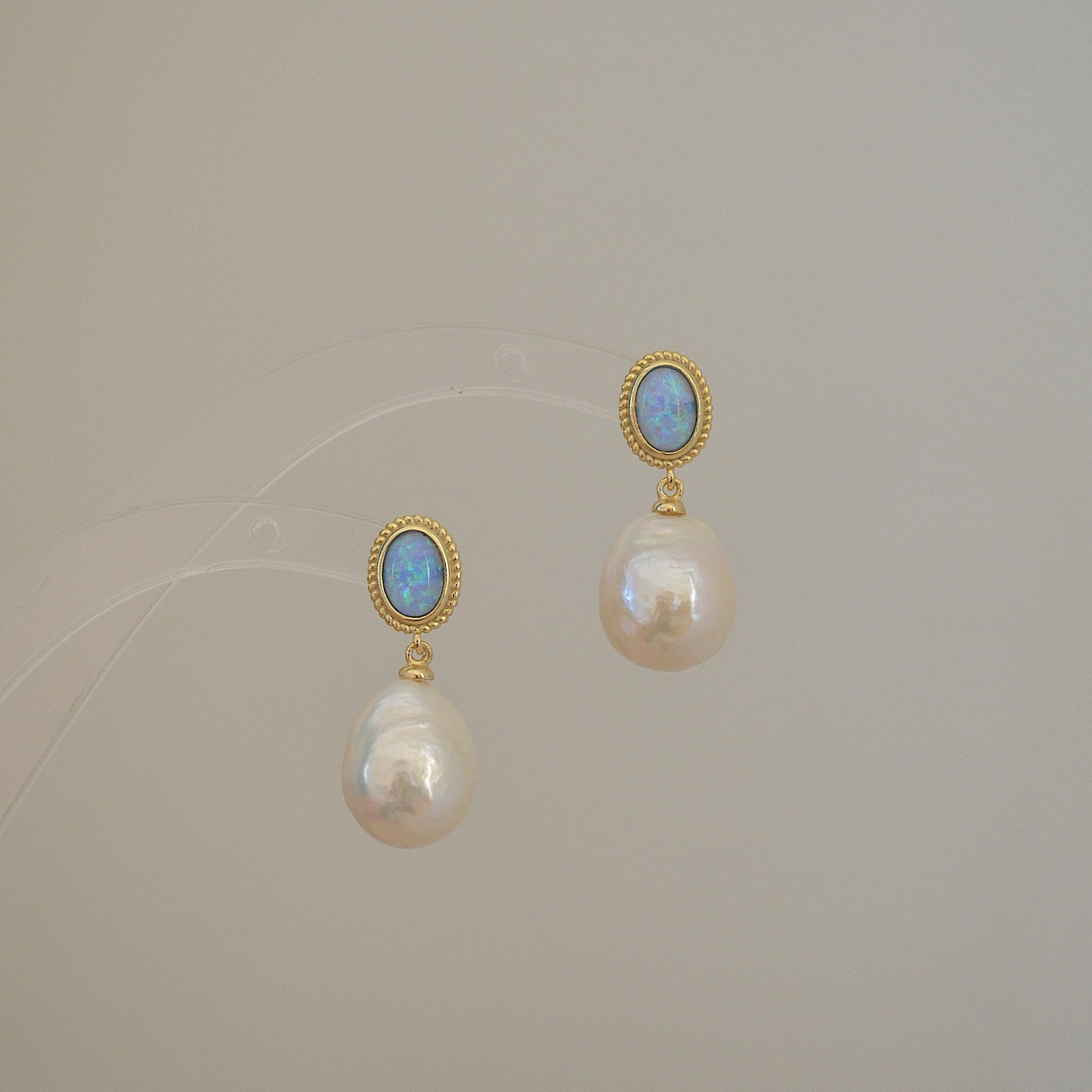 Gemstone-Nature shiny kasumi baroque pearl and lab opal.