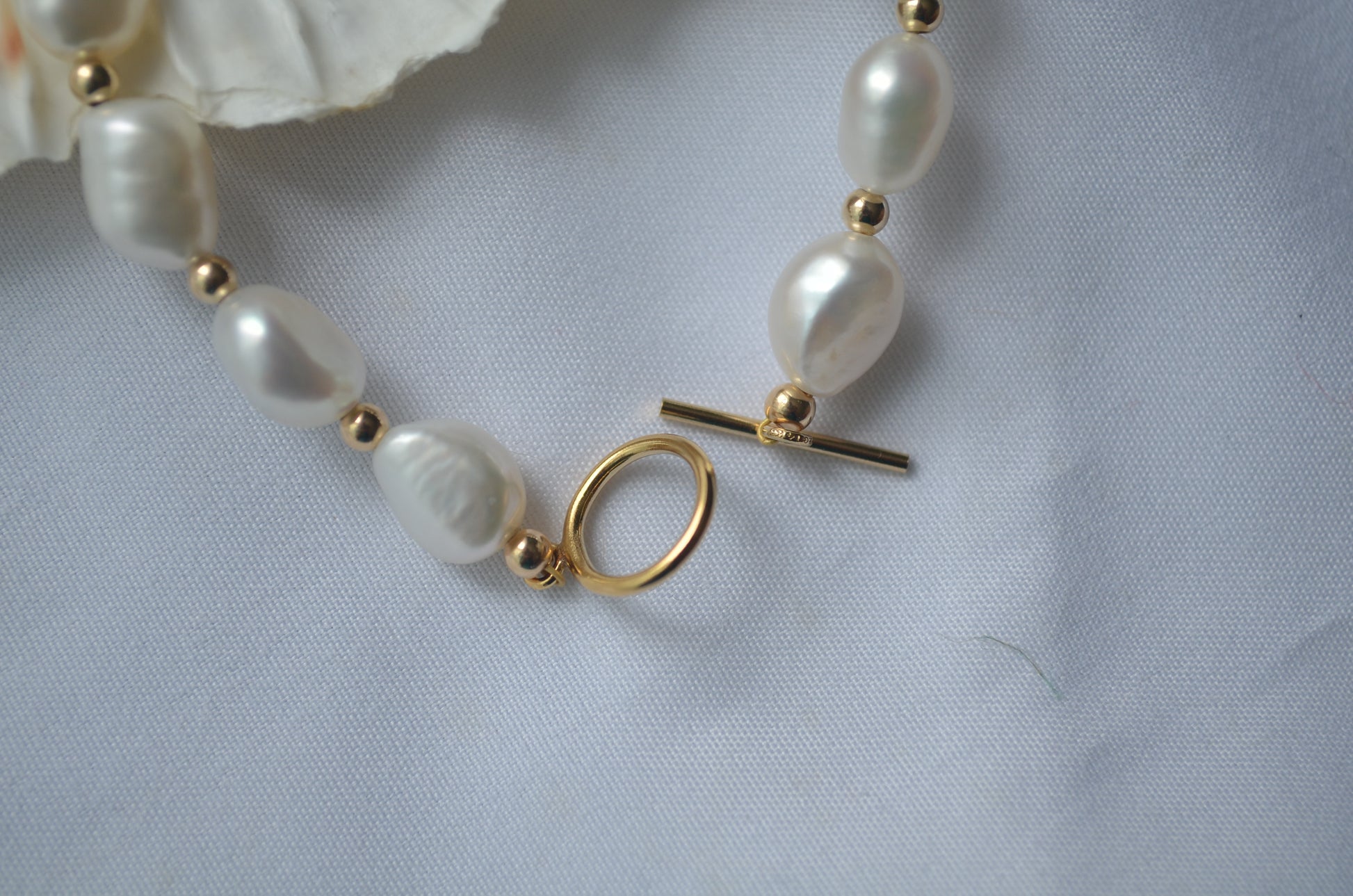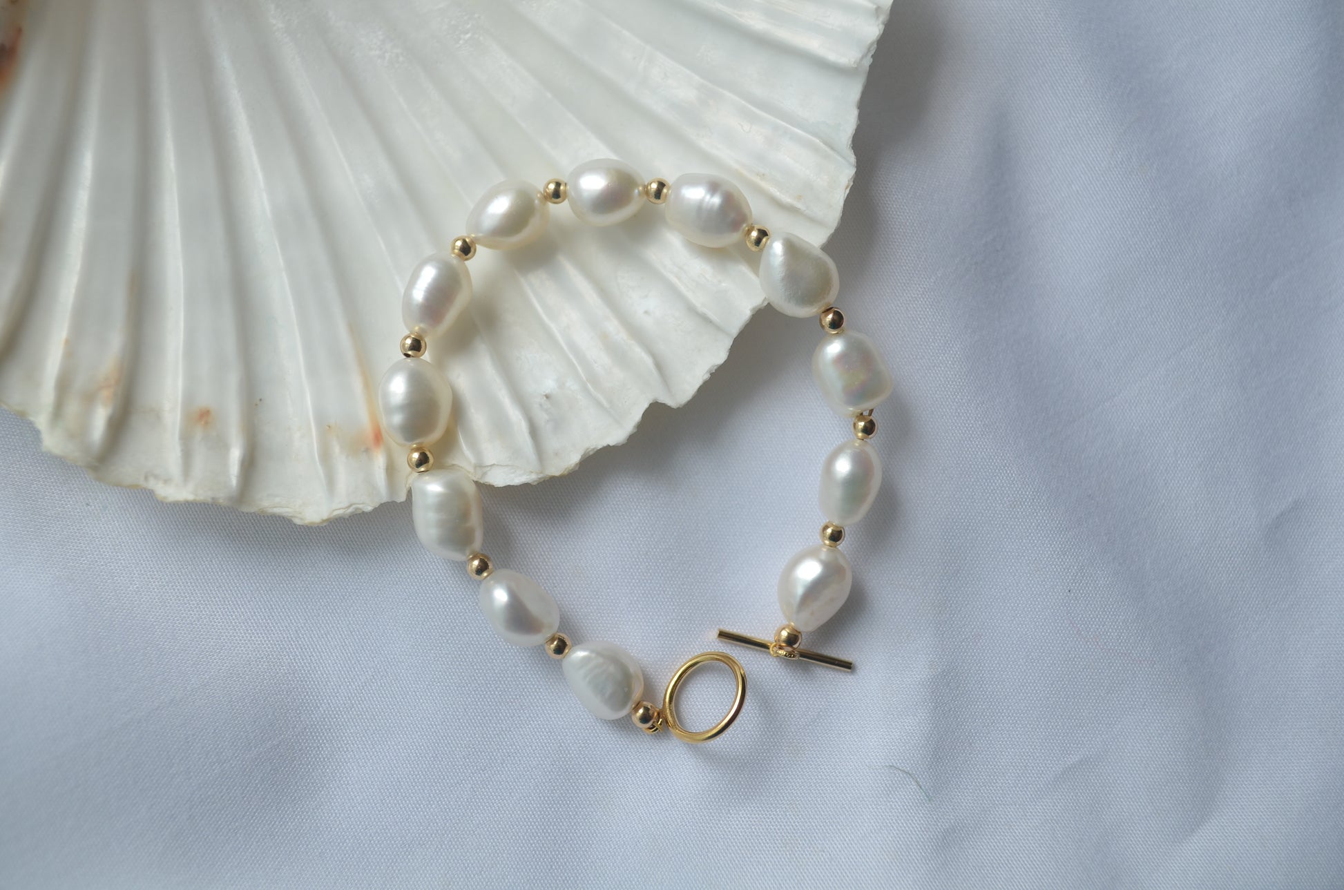 Clara Baroque Pearl and Gold Bead Toggle Bracelet
