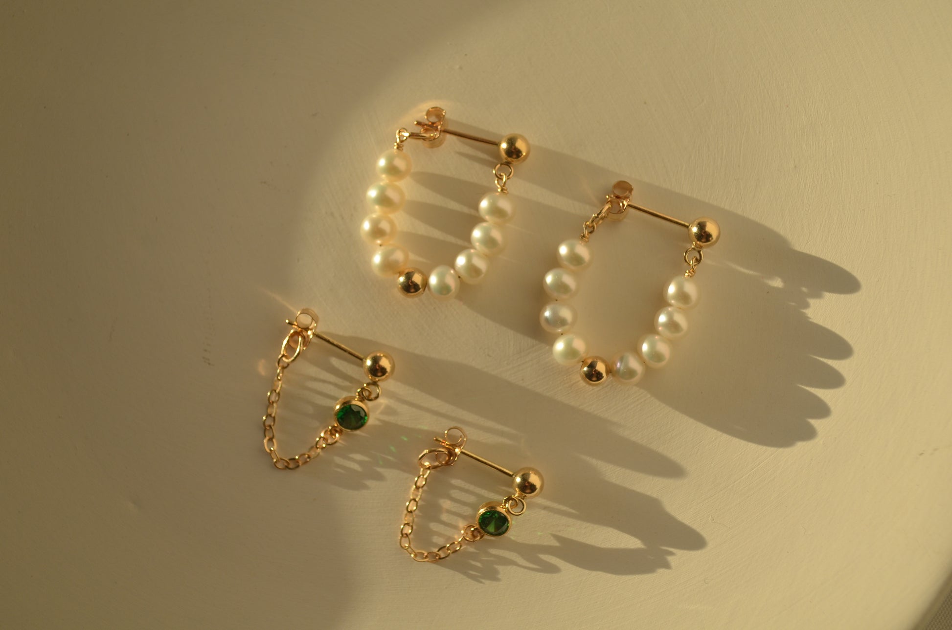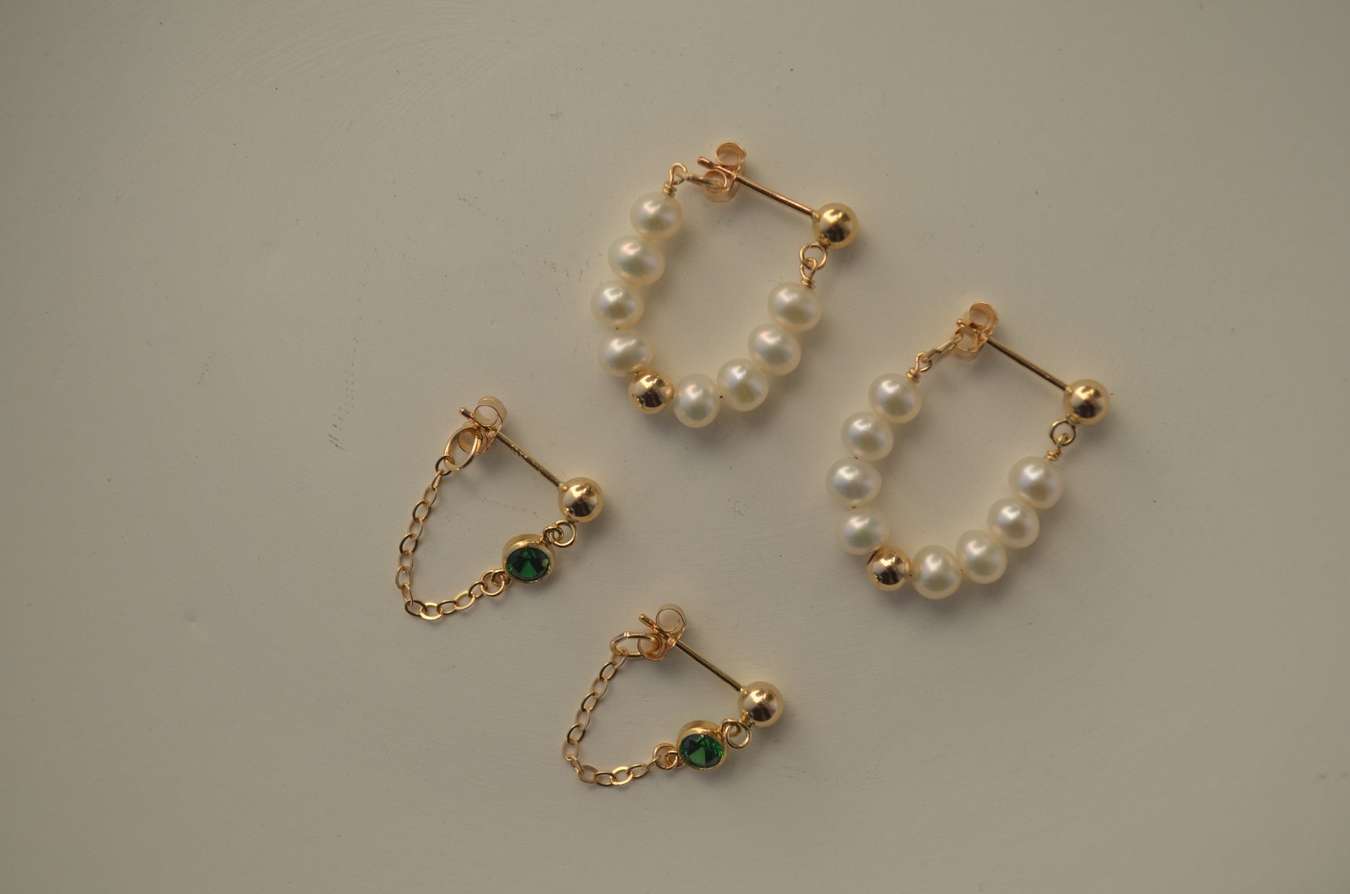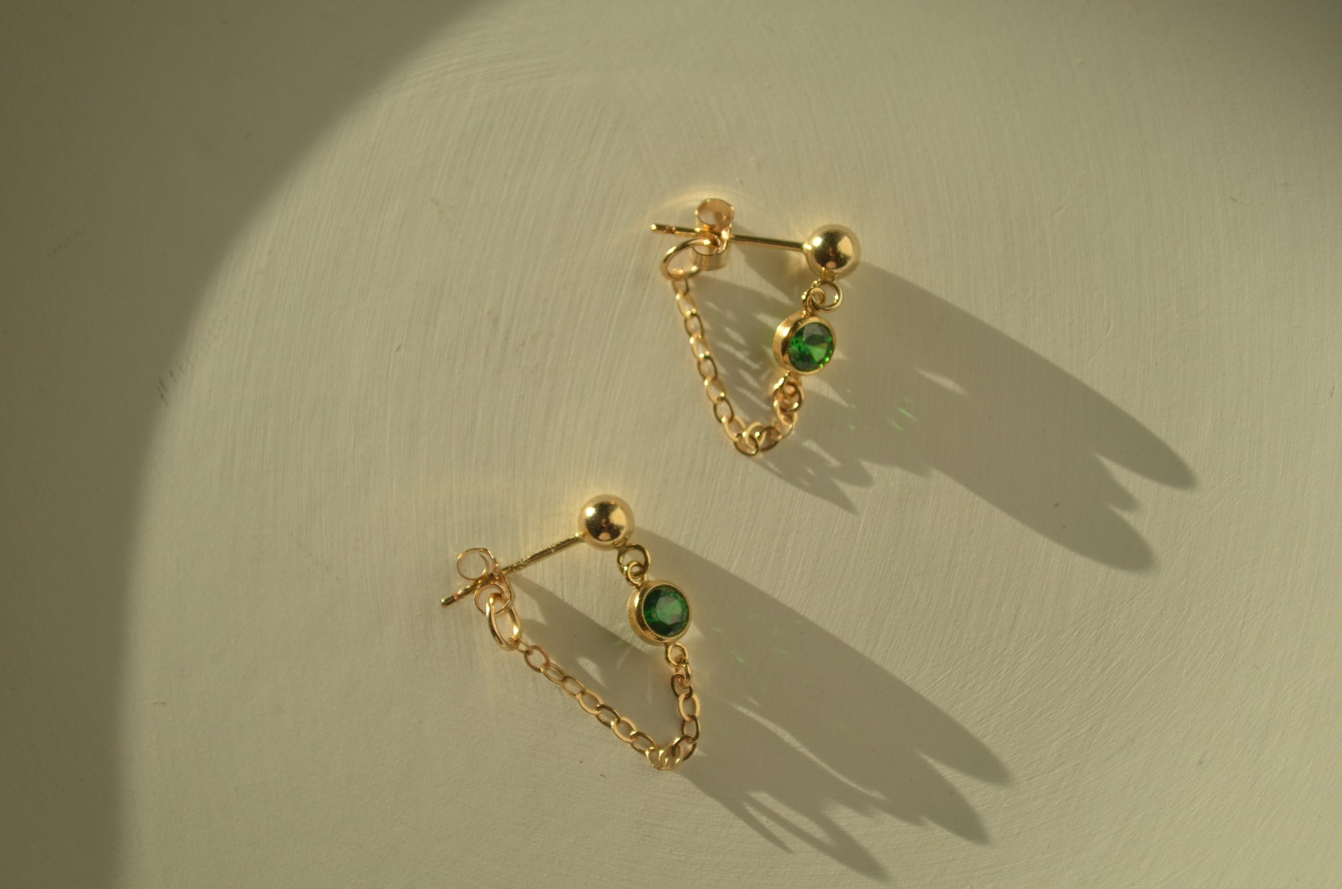 These little green zircon stud and chain earrings adds a touch of freshness and elegance on your every day style.