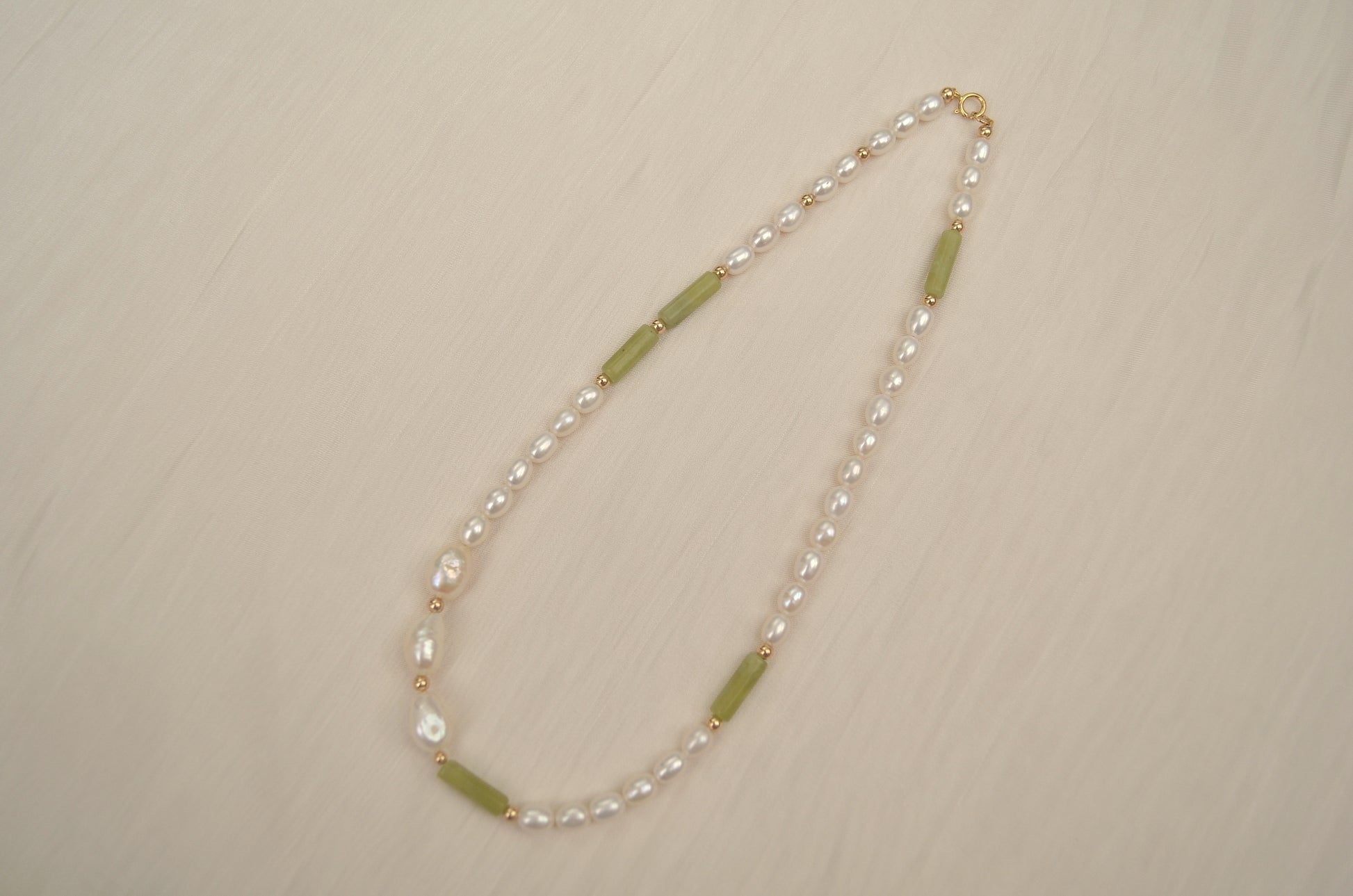 Gemstone-Nature rice pearl, baroque pearl and jade stone.