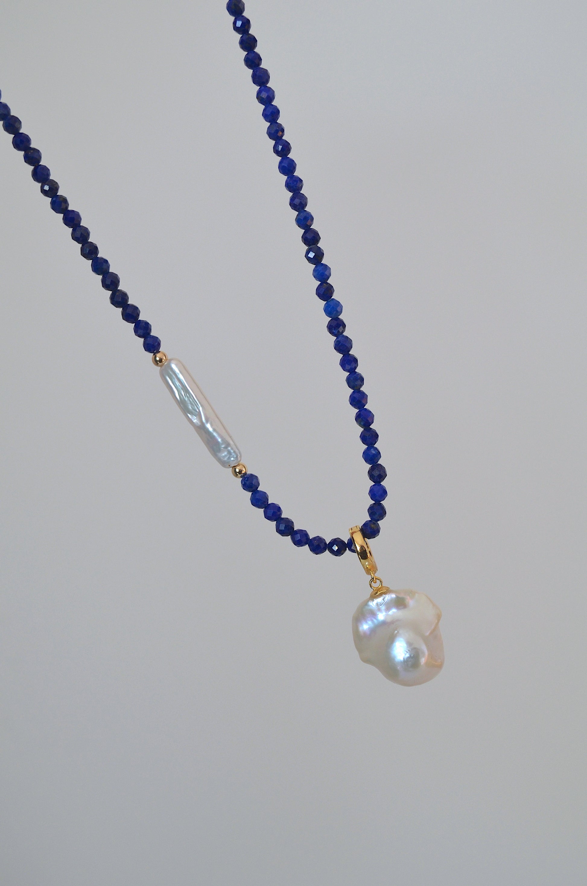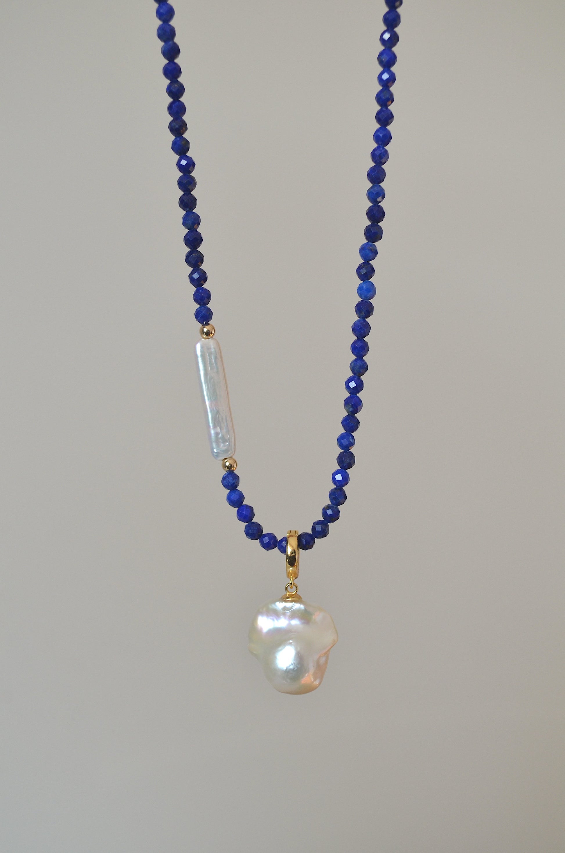 Gemstone-Lapis, baroque pearl stick, large baroque pearl