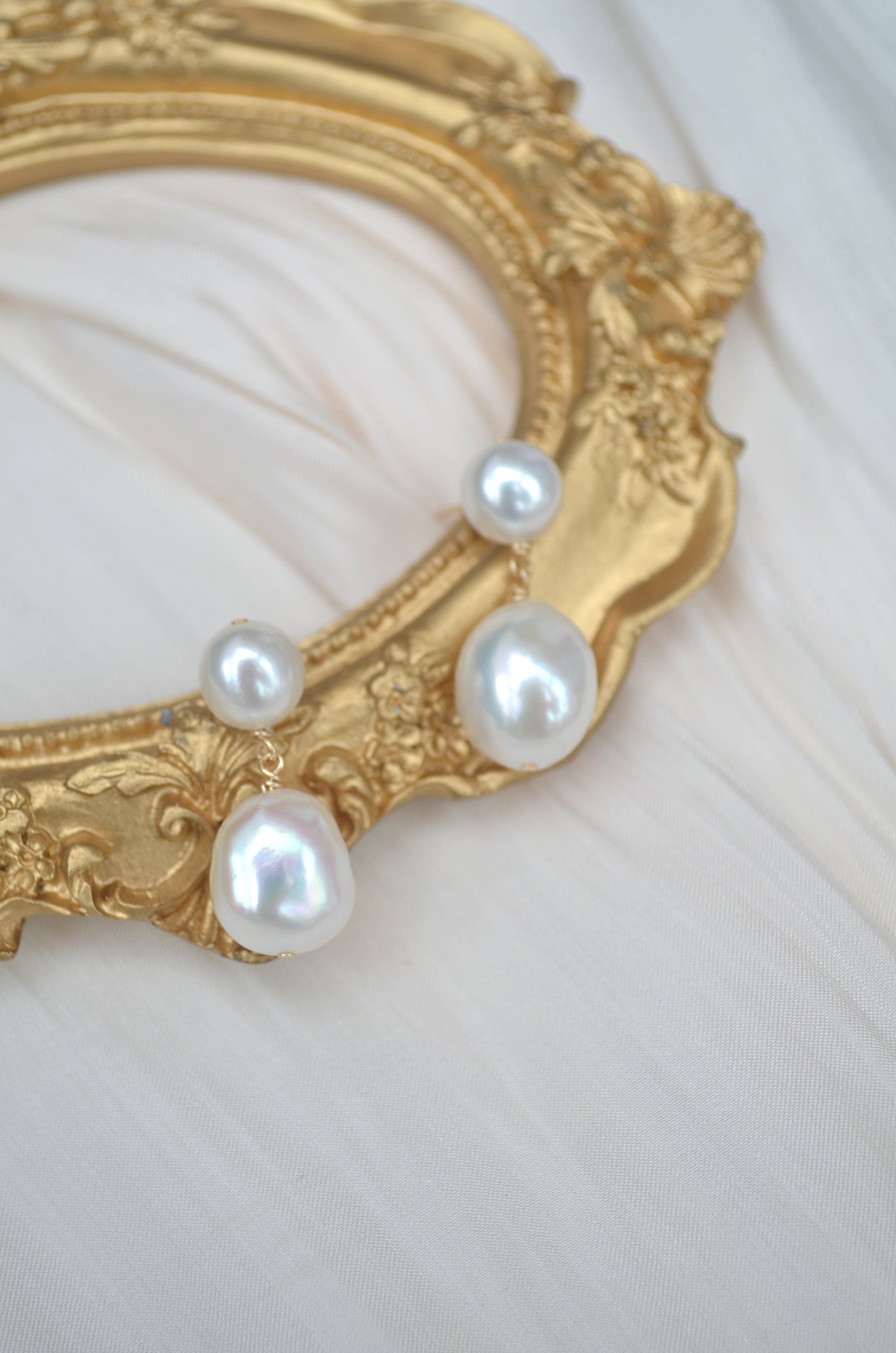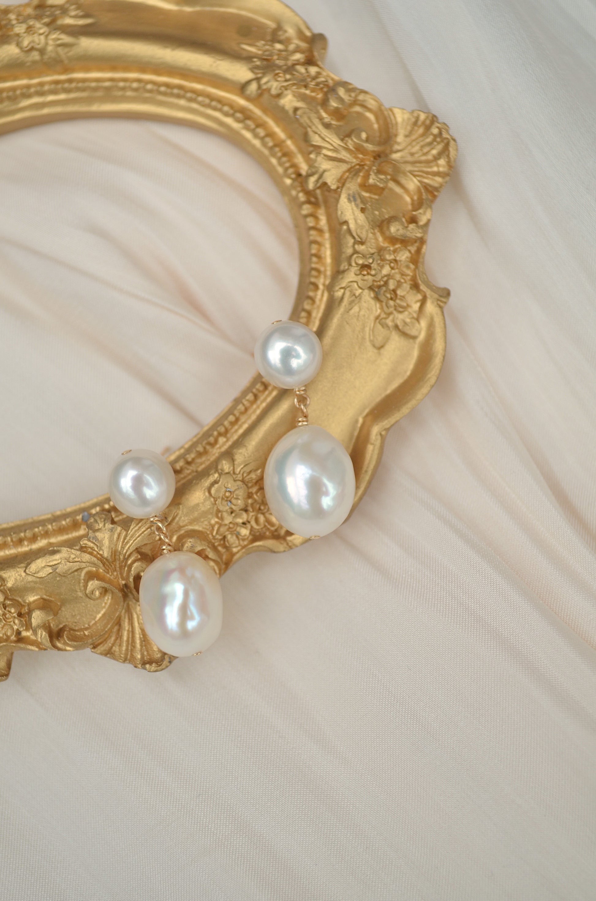 PLEASE NOTE that due to the earrings being made from natural baroque pearls, they will not look identical. However, we think that only accentuates their beauty and uniqueness!