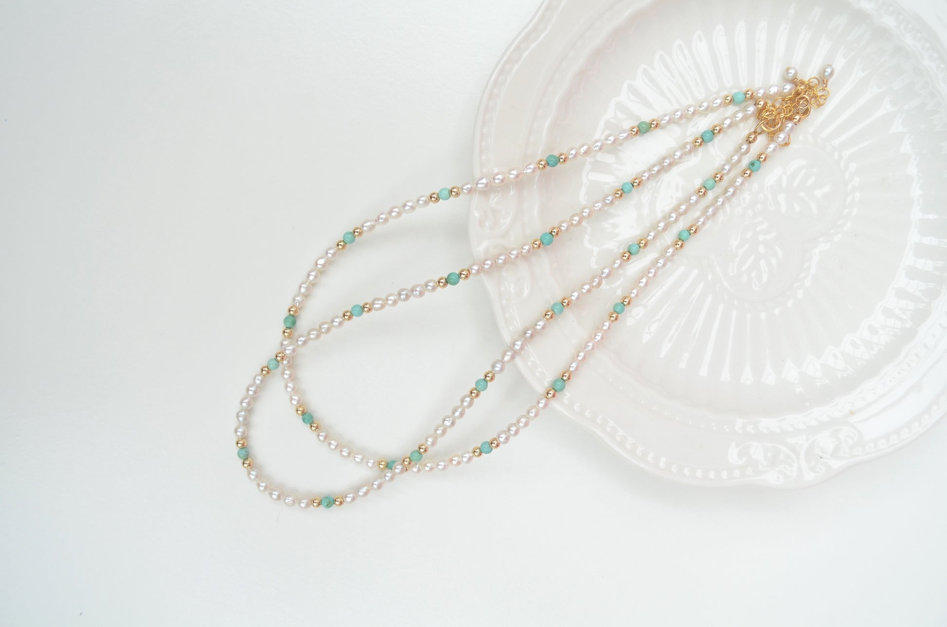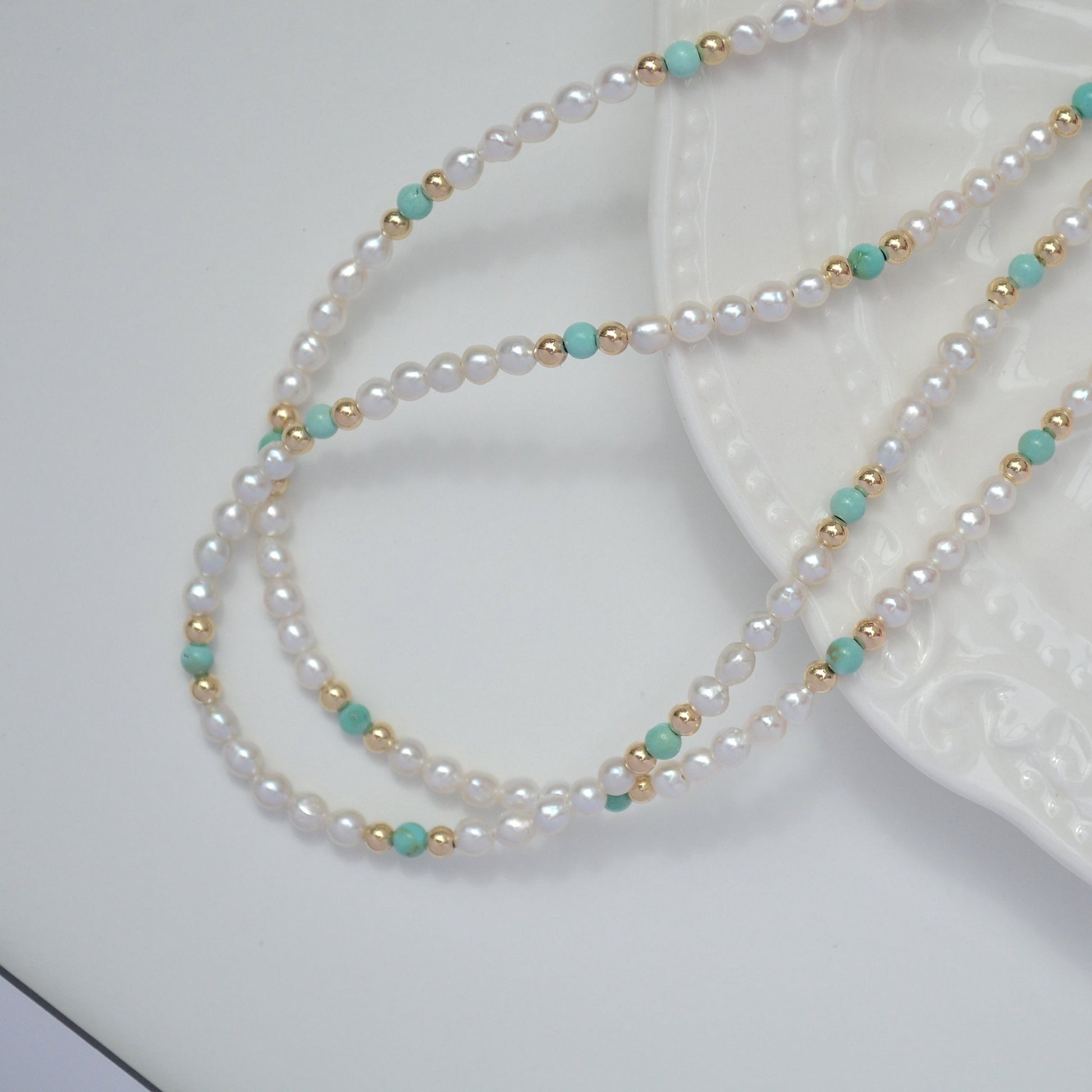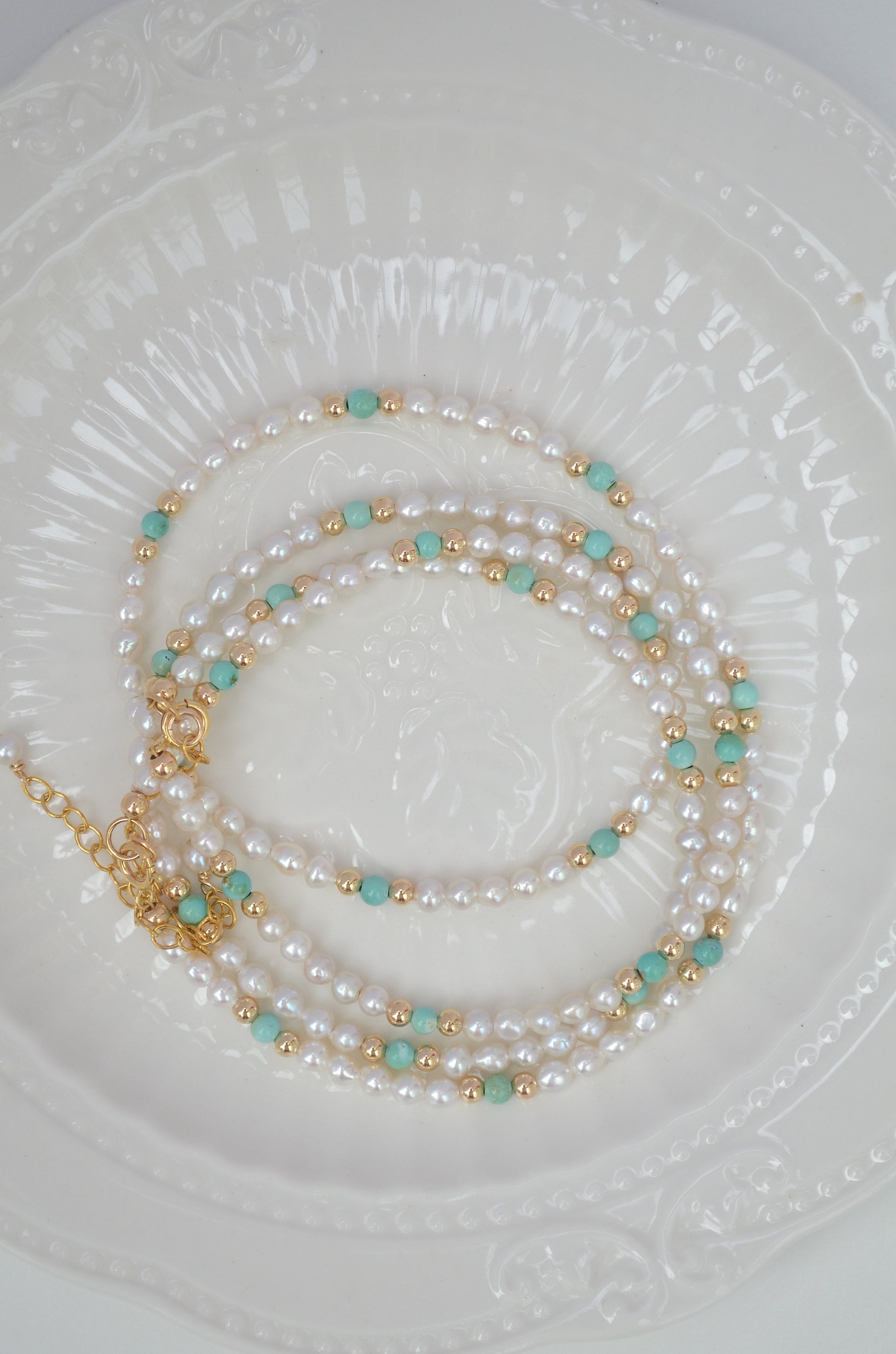 Pearl size 3.5-4mm, natural turquoise beads 3.5mm, gold filled beads 3mm