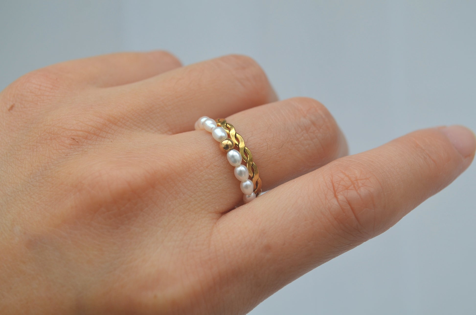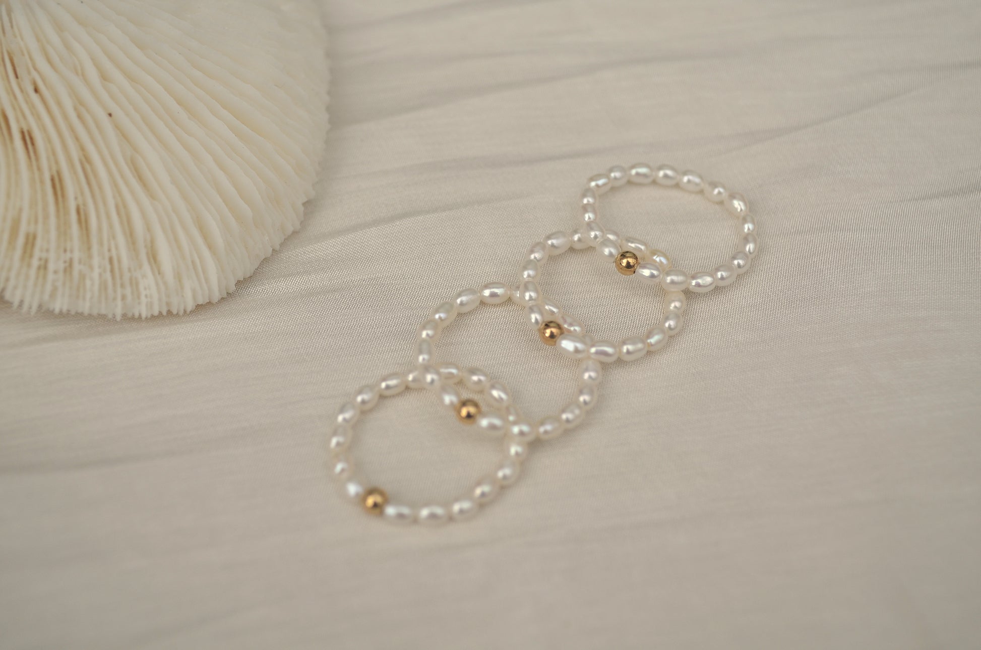 Our Ada pearl ring is handcrafted with freshwater pearls and a 14k gold filled bead. She'll become an essential pearl piece for your everyday ring stack.