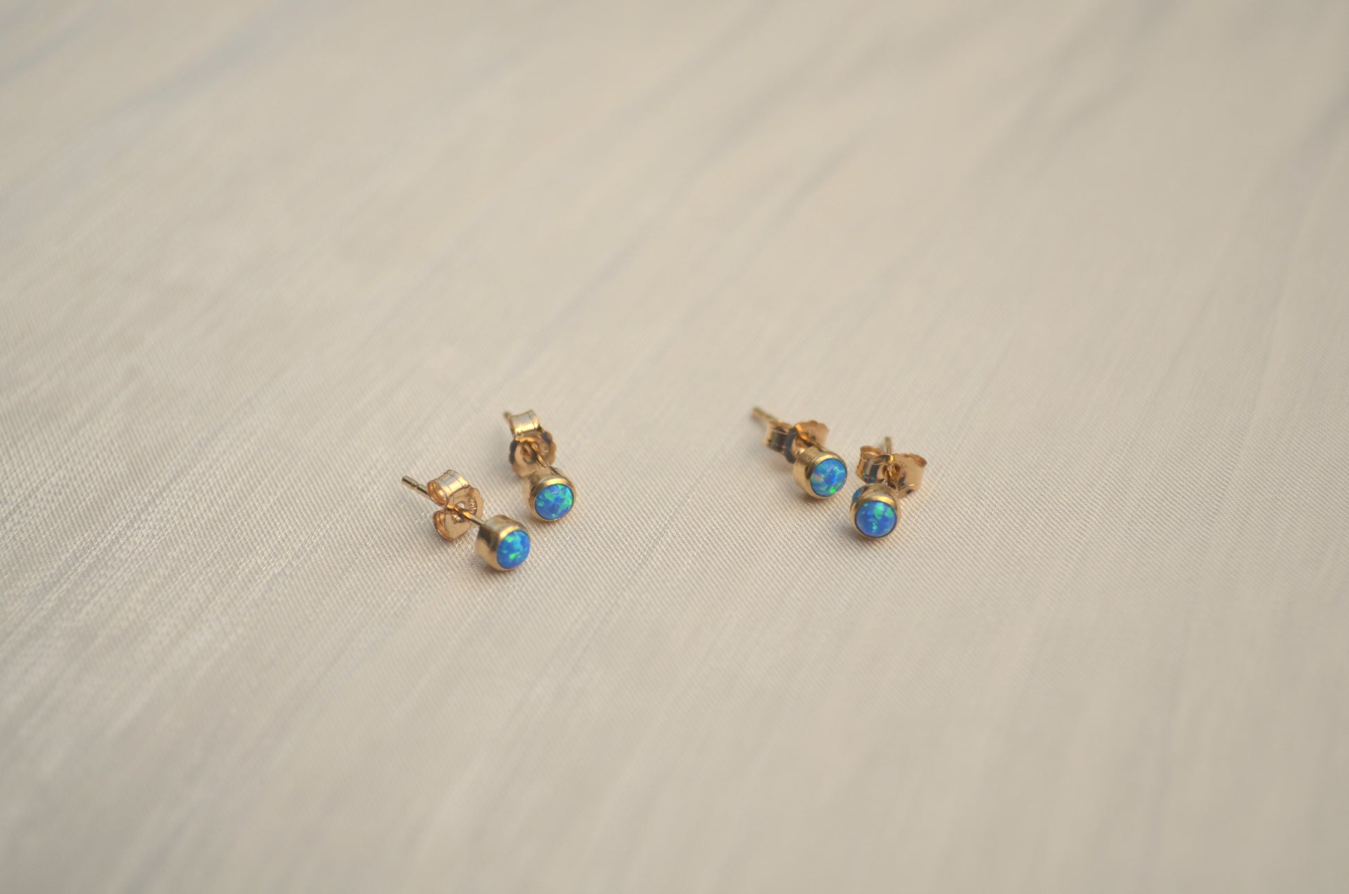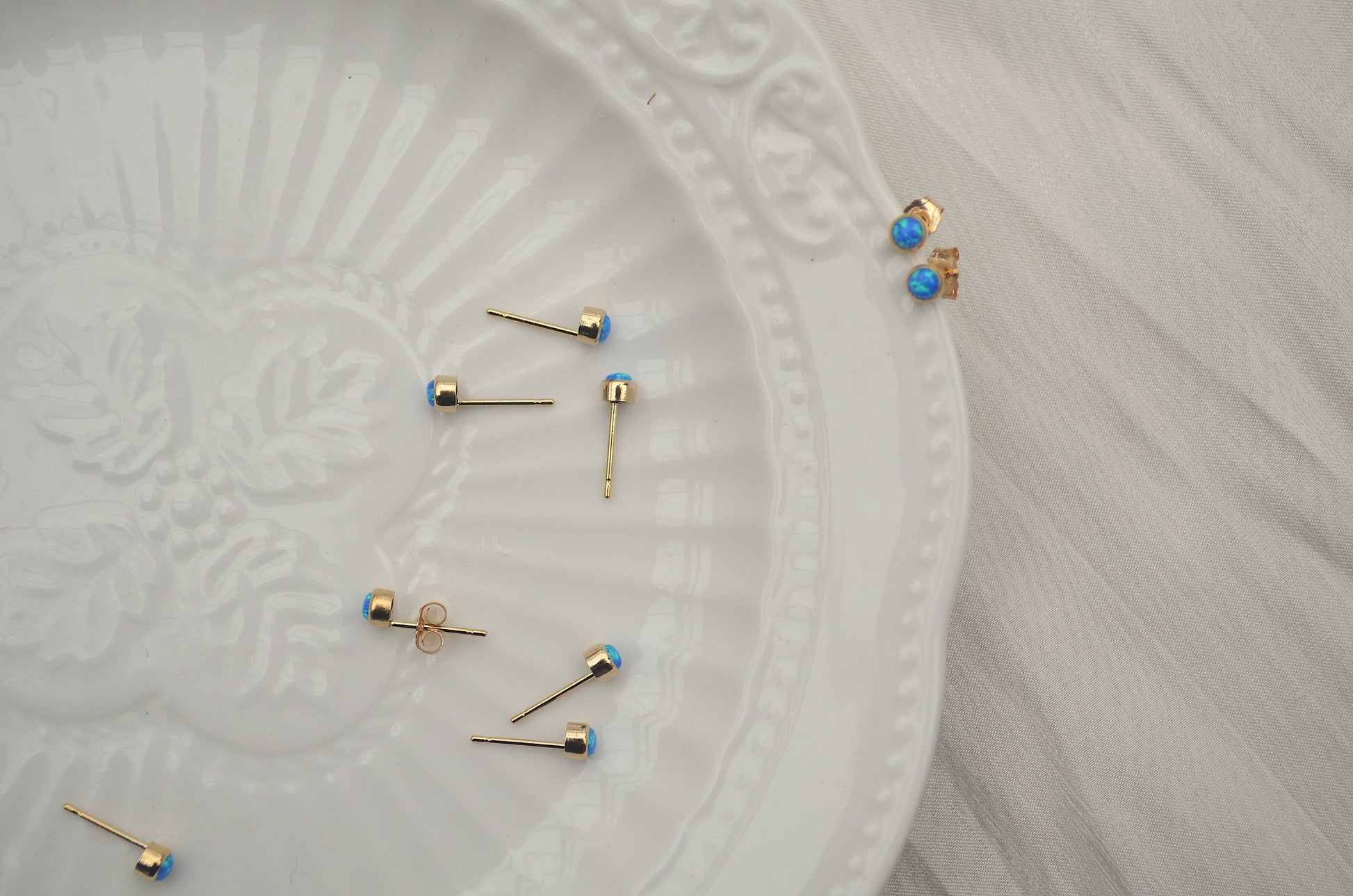 These simple but classy stud is perfect for everyday wear and special occasion. It features a 3.6mm blue opal zircon stone on the 14k gold filled stud. They will go perfectly with our blue opal ring too.