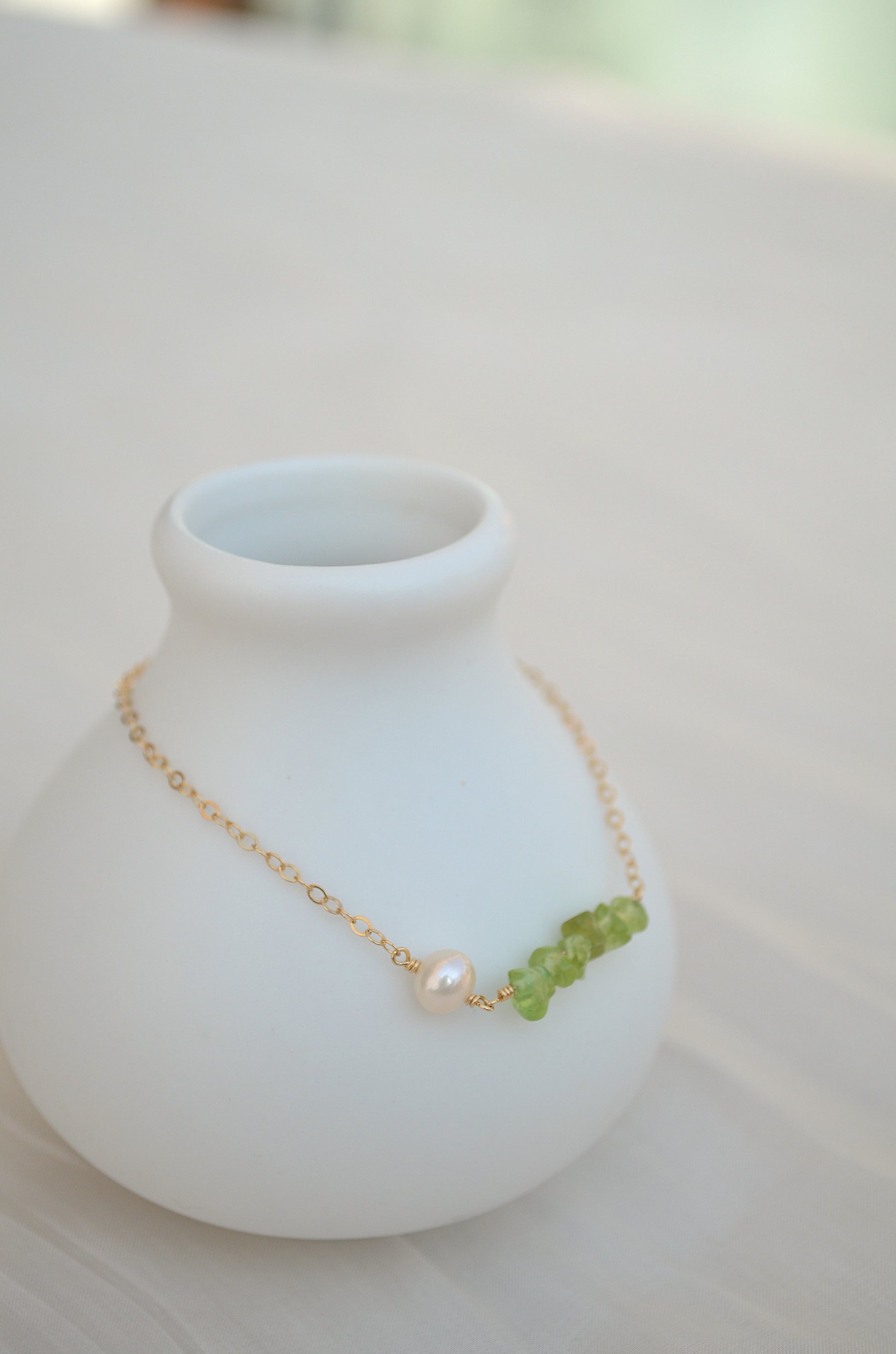 Gemstone: High quality pearls 5.5m, peridot 6mm.