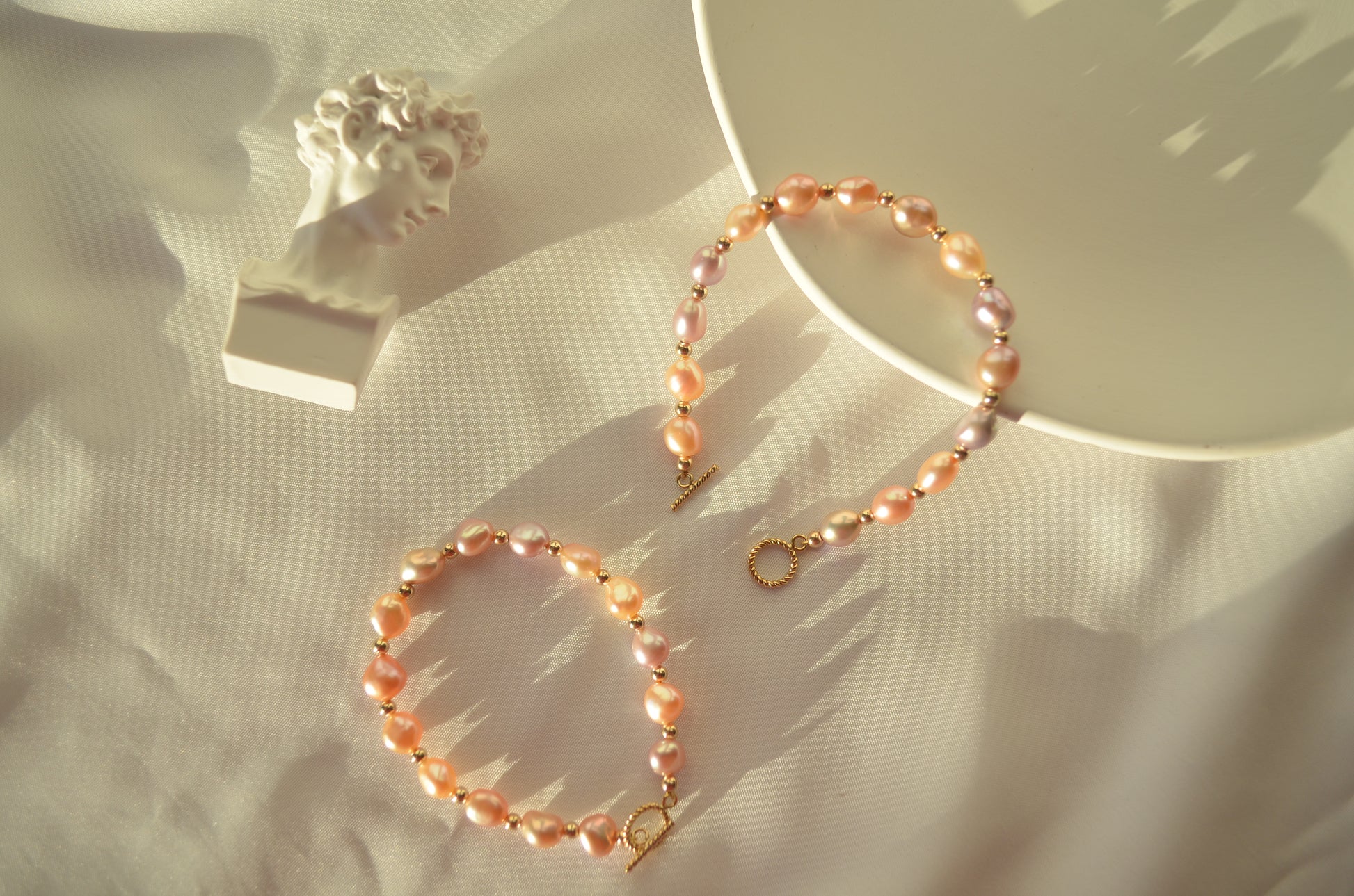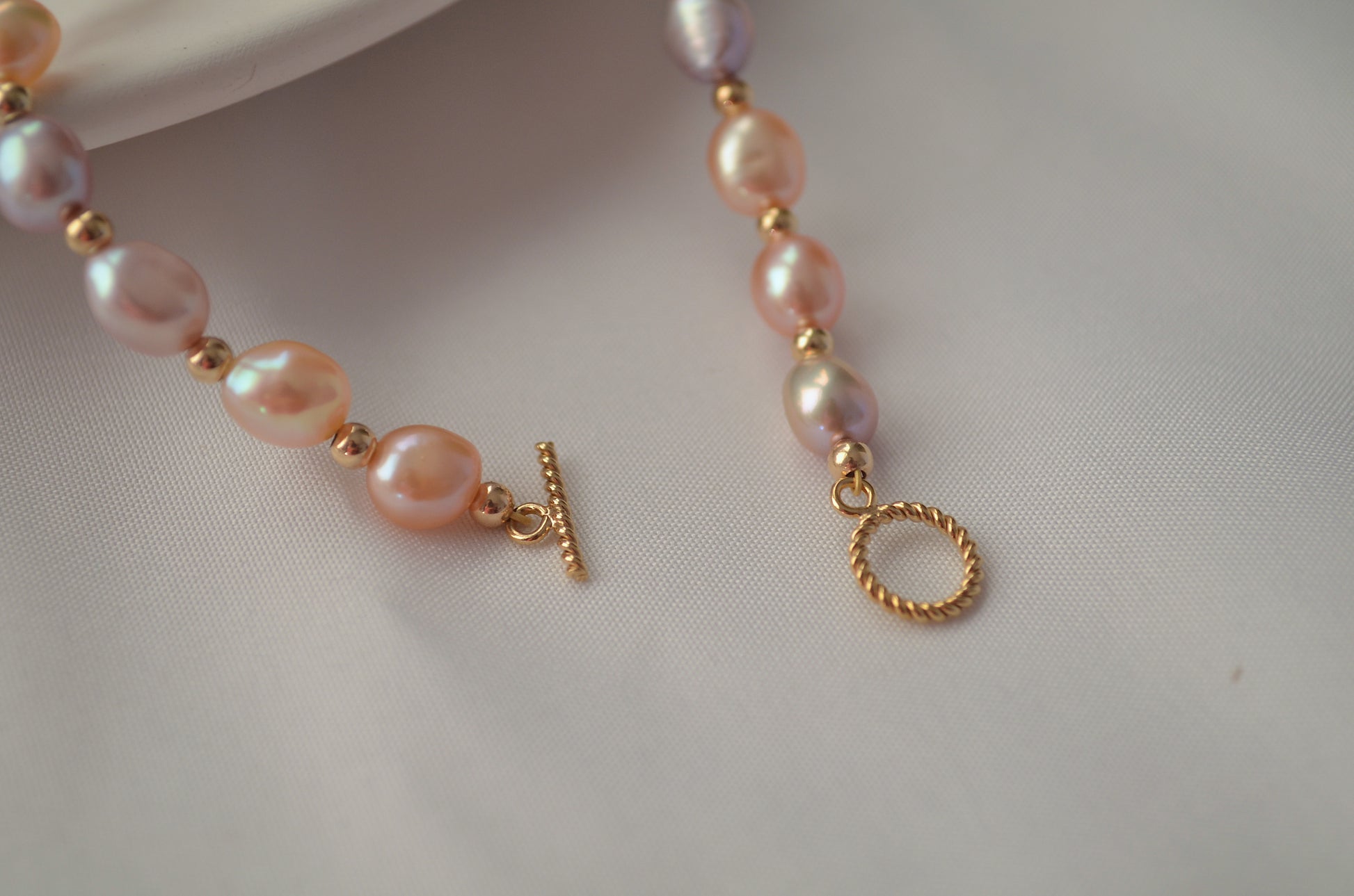 Gemstone-Nature shiny pink and purple baroque pearls with smooth surface and lovely glow. Really great quality.