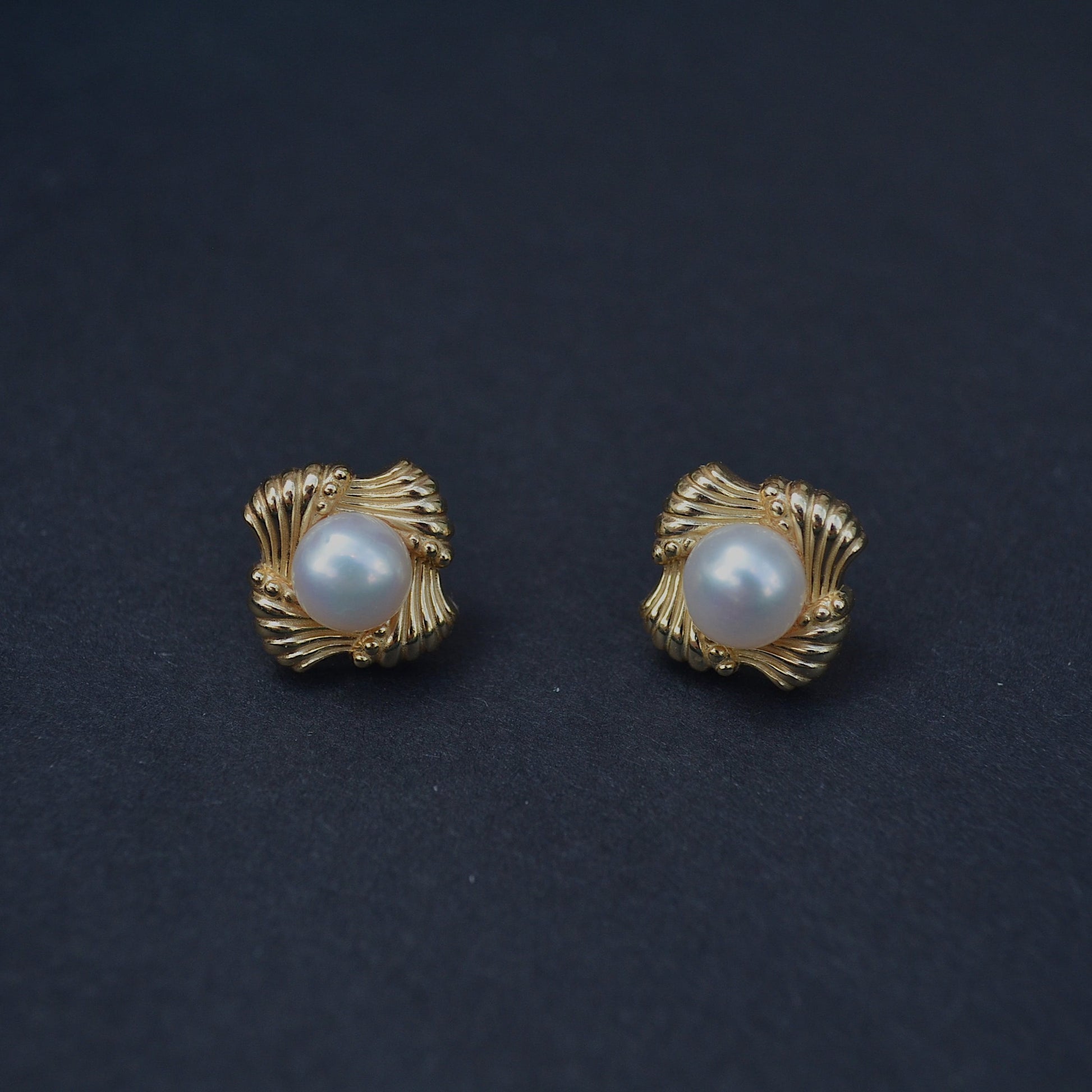 Gold Chunky Pearl Stud Earrings, Big Pearl Studs, Wedding Earrings, Vintage Style Earrings, Statement Pearl Earrings
