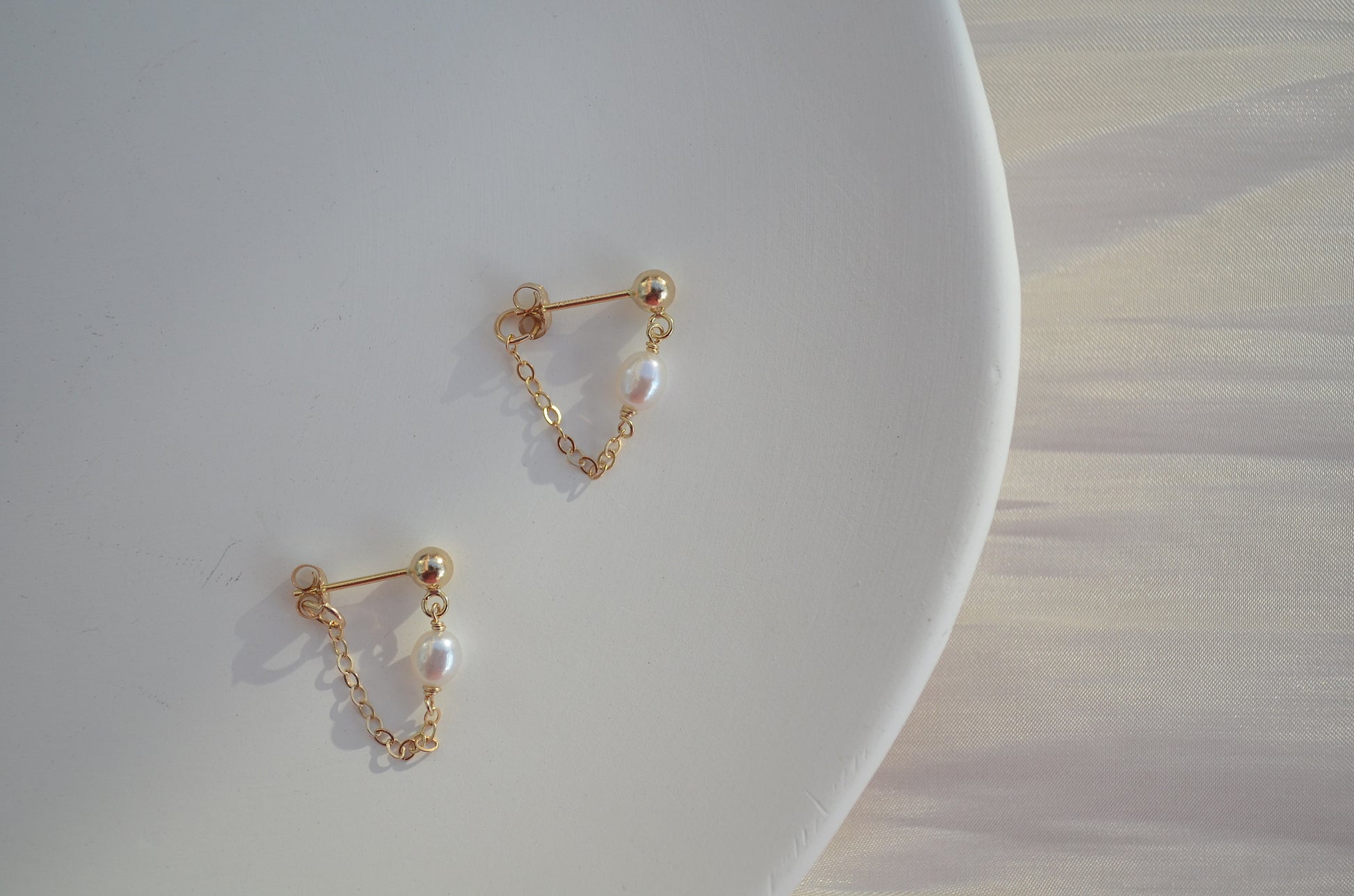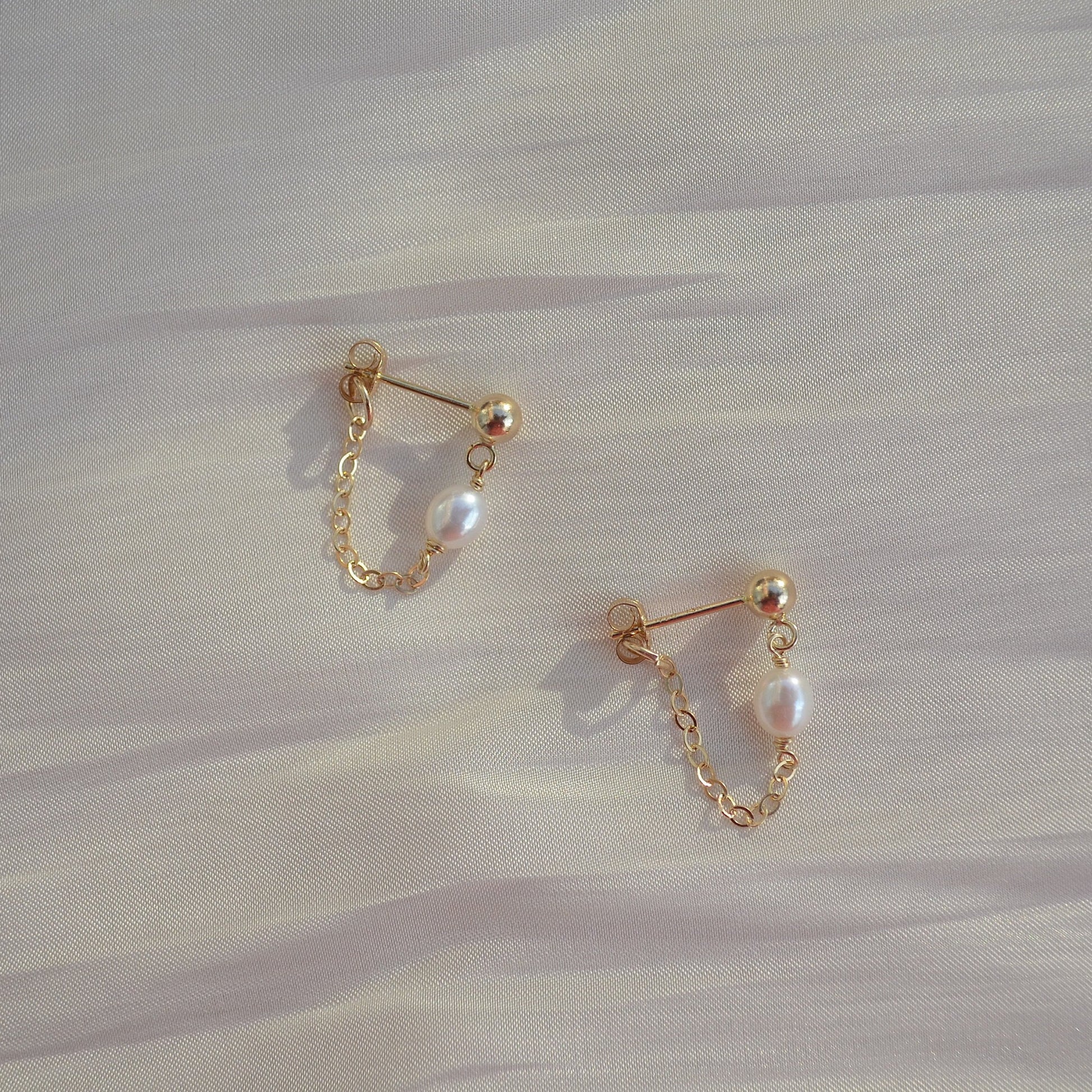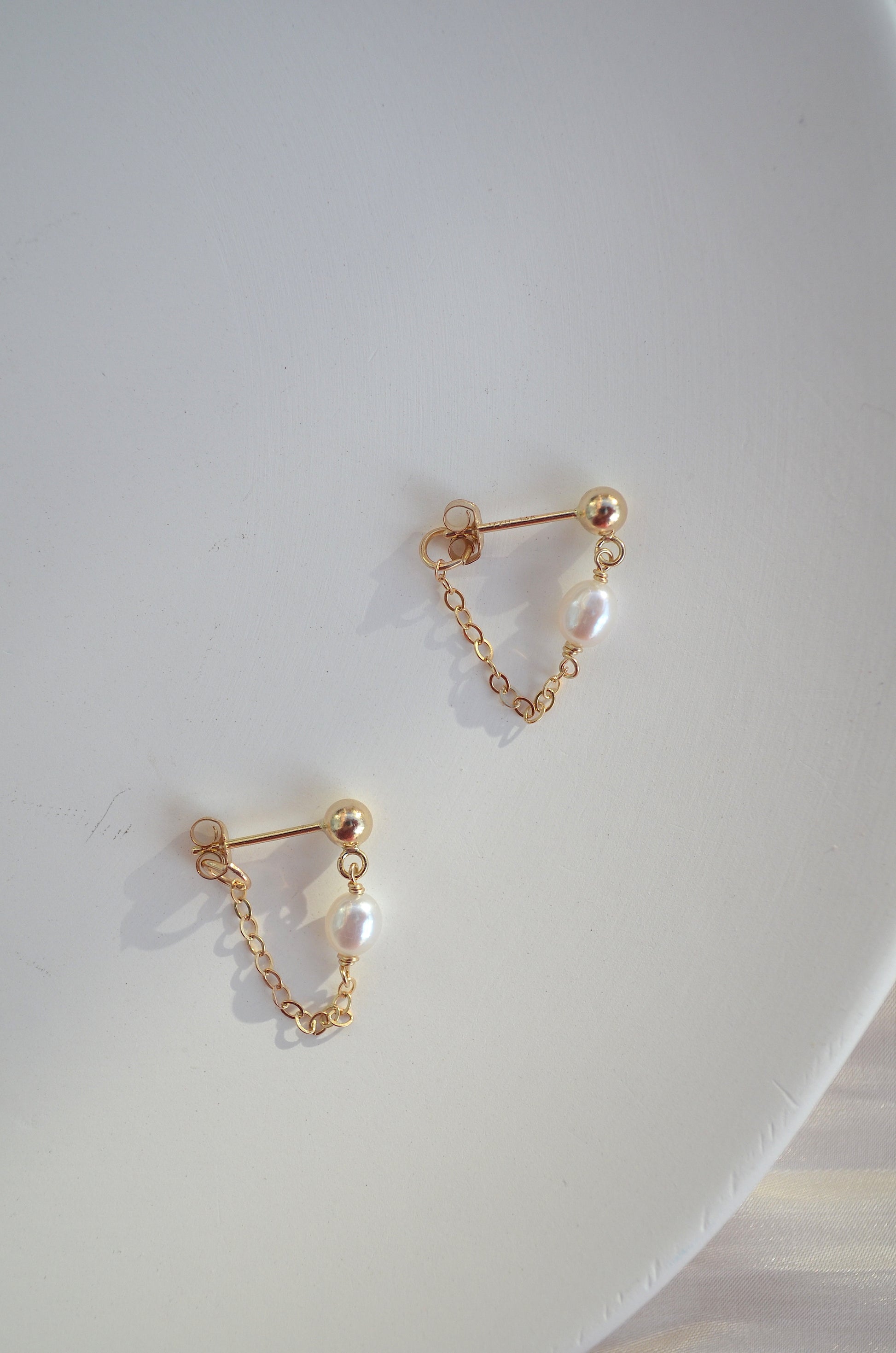 These dainty stud and chain earrings adds a touch of freshness and elegance on your every day style. Perfect for everyday wear, on its own or stacking with other earrings